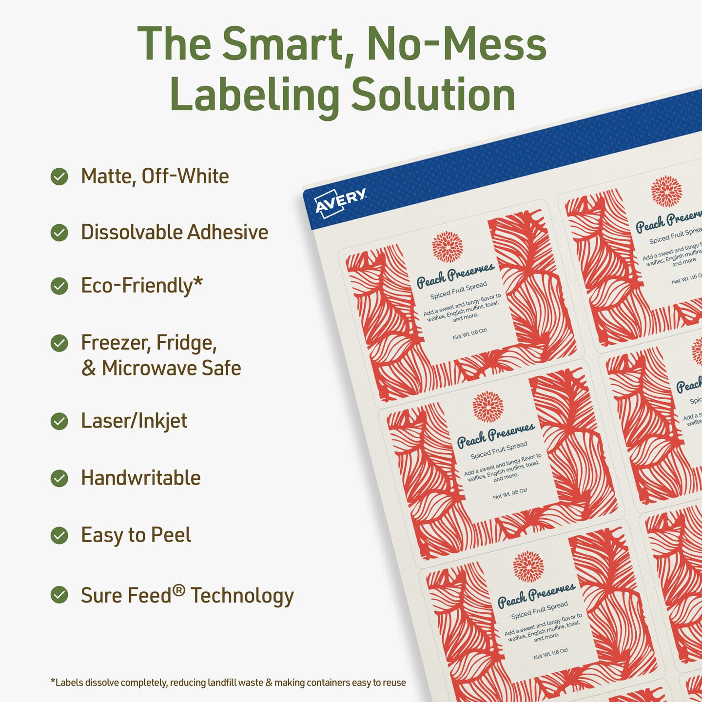 Avery Dissolvable Labels, 2" x 2-5/8" Rectangle
