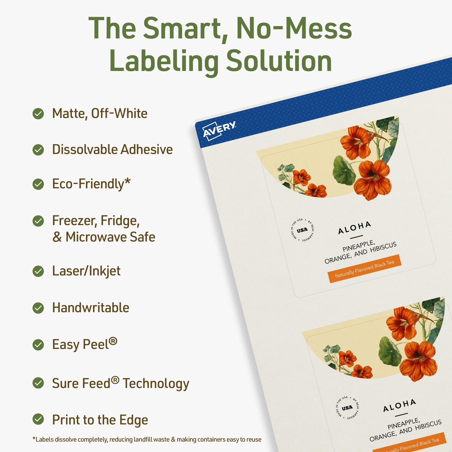 Avery Dissolvable Labels, 2.75" x 2.75" Square