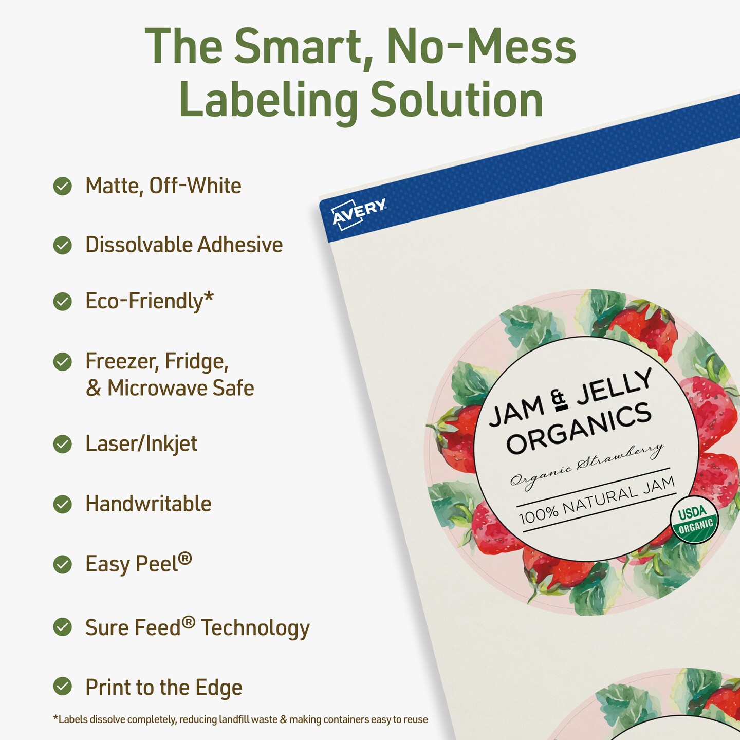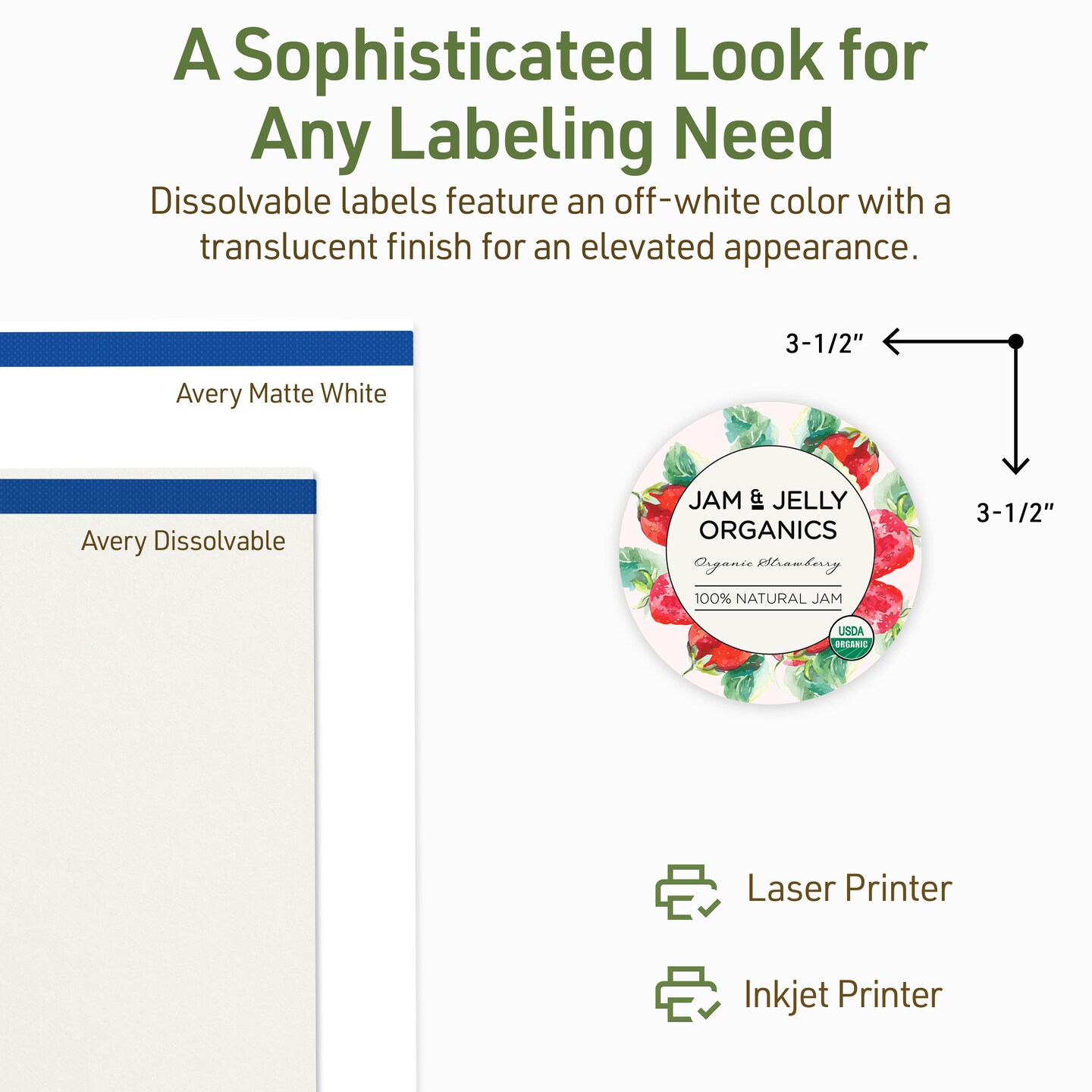 Avery Dissolvable Labels, 3.5" Diameter Round