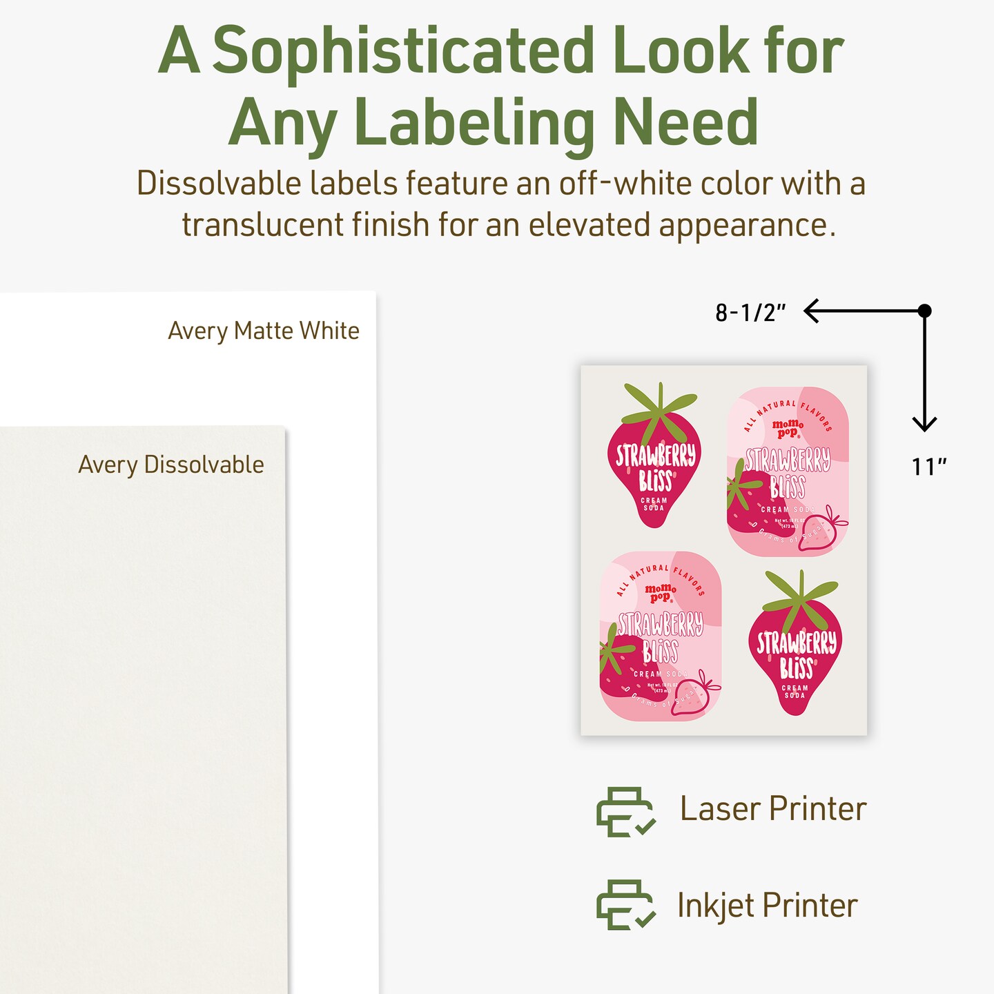 Avery Dissolvable Sticker Paper, 8.5" x 11" Rectangle
