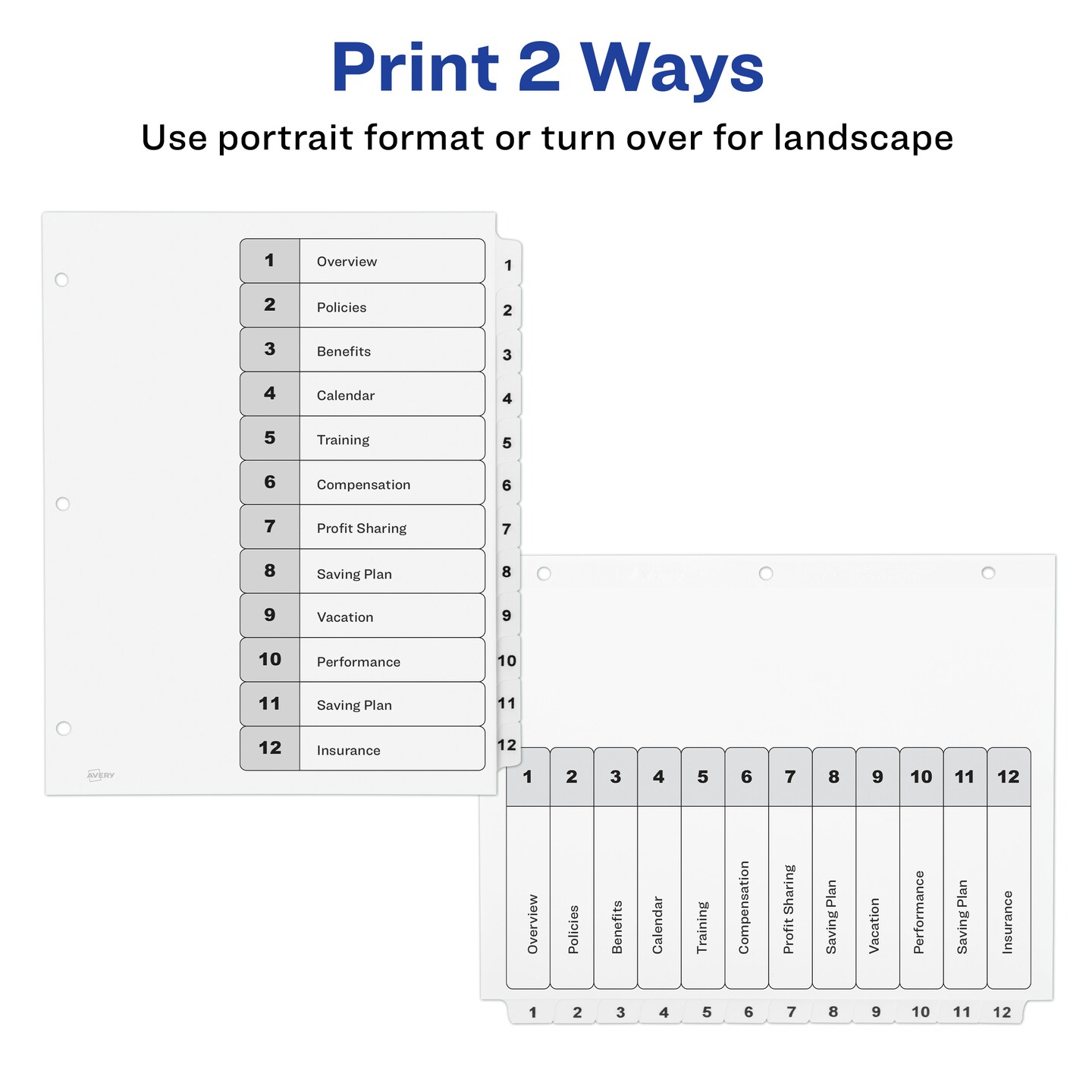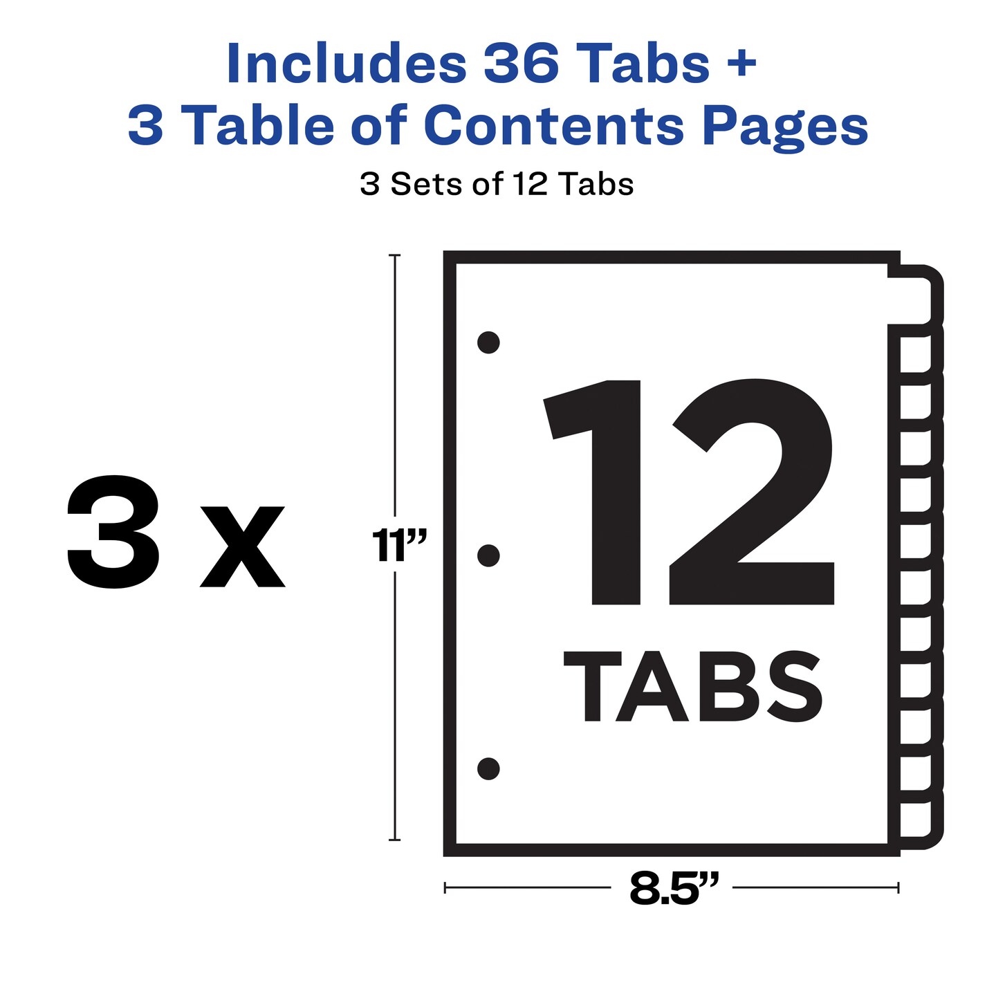 Avery Dividers for 3 Ring Binders, 12 Tabs per Set, Customizable Table of Contents, Classic White Tabs (3 Sets of 11078)