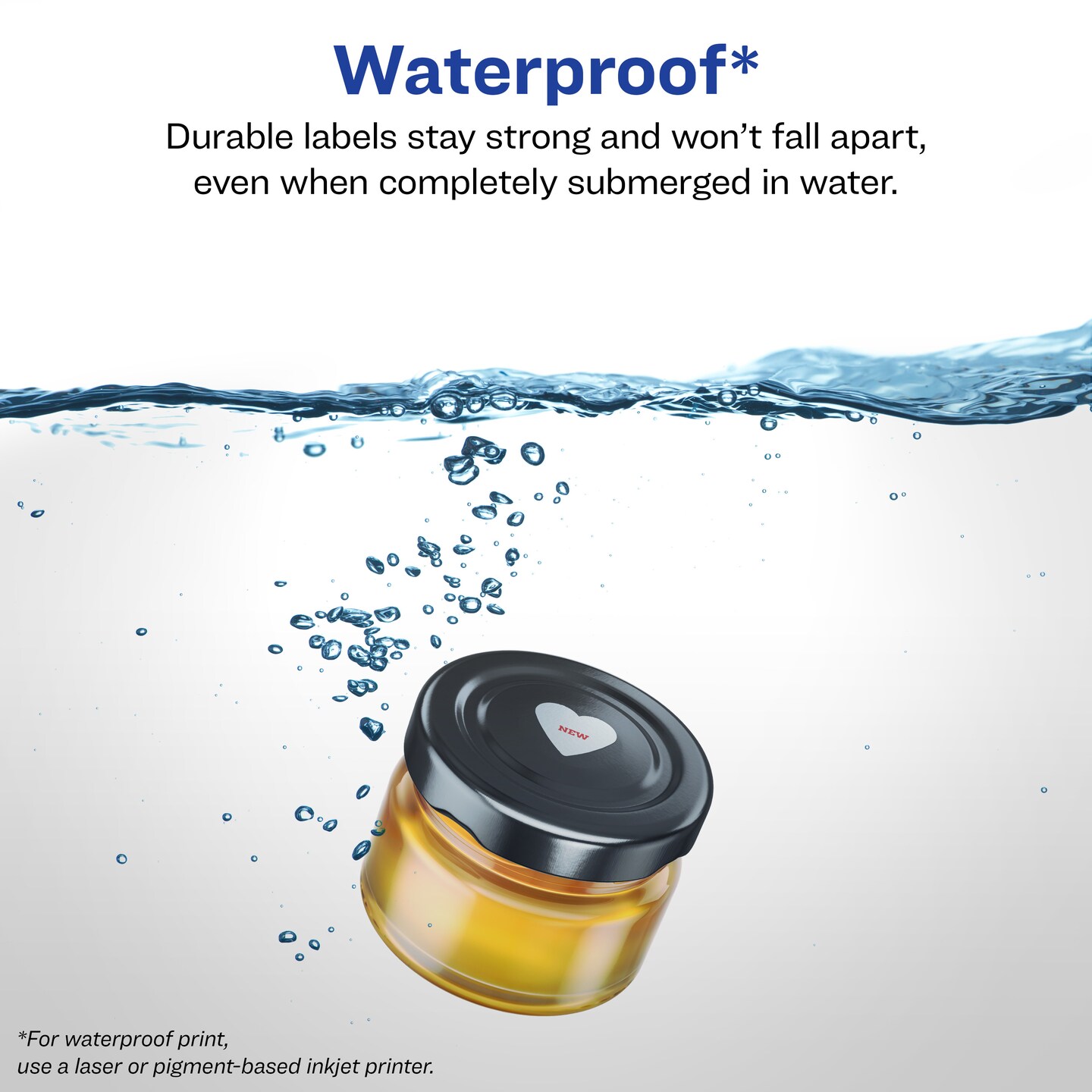 Avery Durable Waterproof Heart Labels with Sure Feed, 1.5" x 1.5"