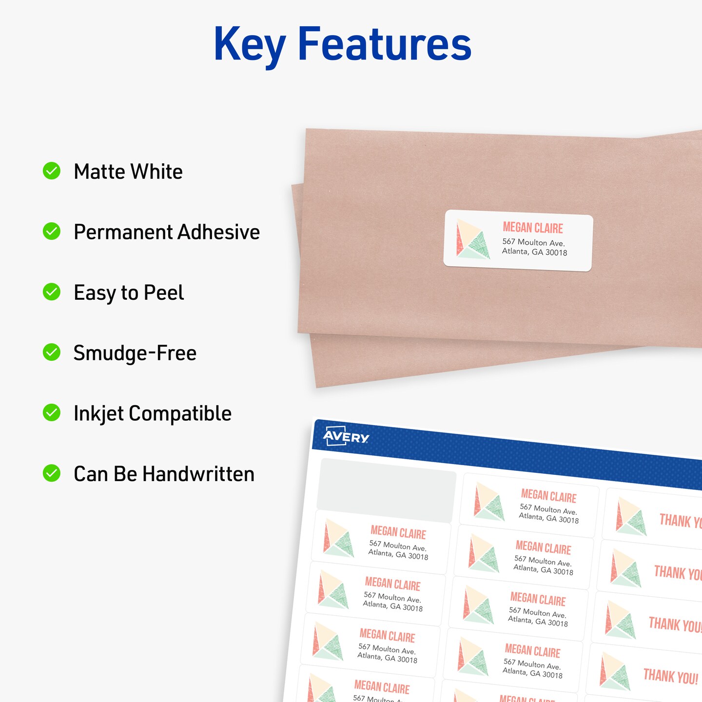 Avery Easy Peel Printable Address Labels with Sure Feed, 1" x 2-5/8" Customizable Stickers, White, 750 Blank Mailing Labels, Great for Mailing, Shipping, and More (8160)