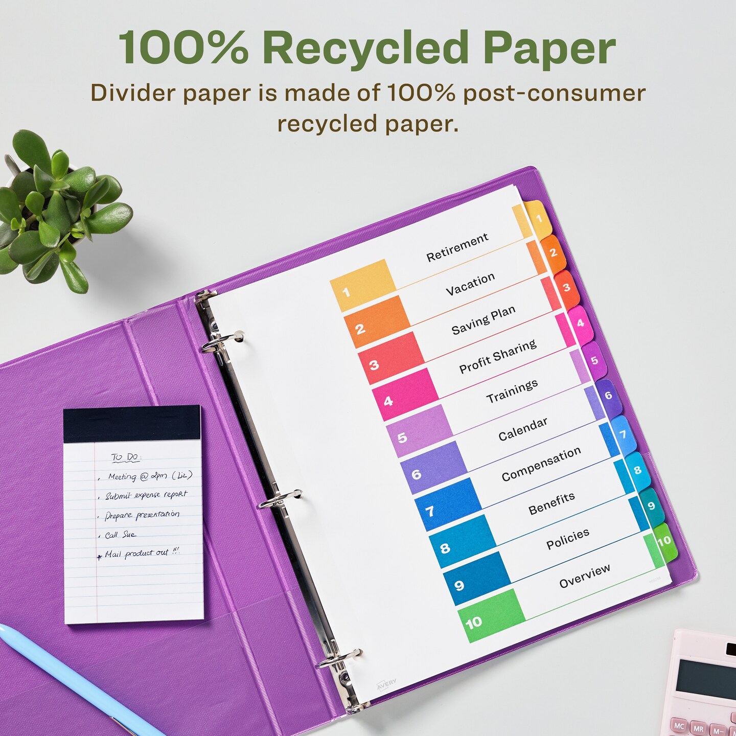 Avery EcoFriendly Recycled Dividers for 3 Ring Binders, 10 Tabs per Set, Customizable Table of Contents, Multicolor Tabs (3 Sets of 11082)