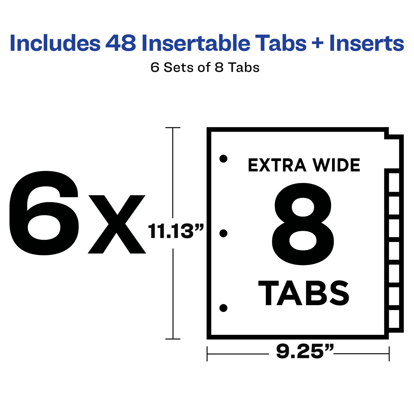 Avery Extra-Wide Big Tab Insertable Dividers for 3 Ring Binders, 8-Tab Sets, White Paper, Multicolor Tabs, Works With Sheet Protectors, 6 Sets (21211)