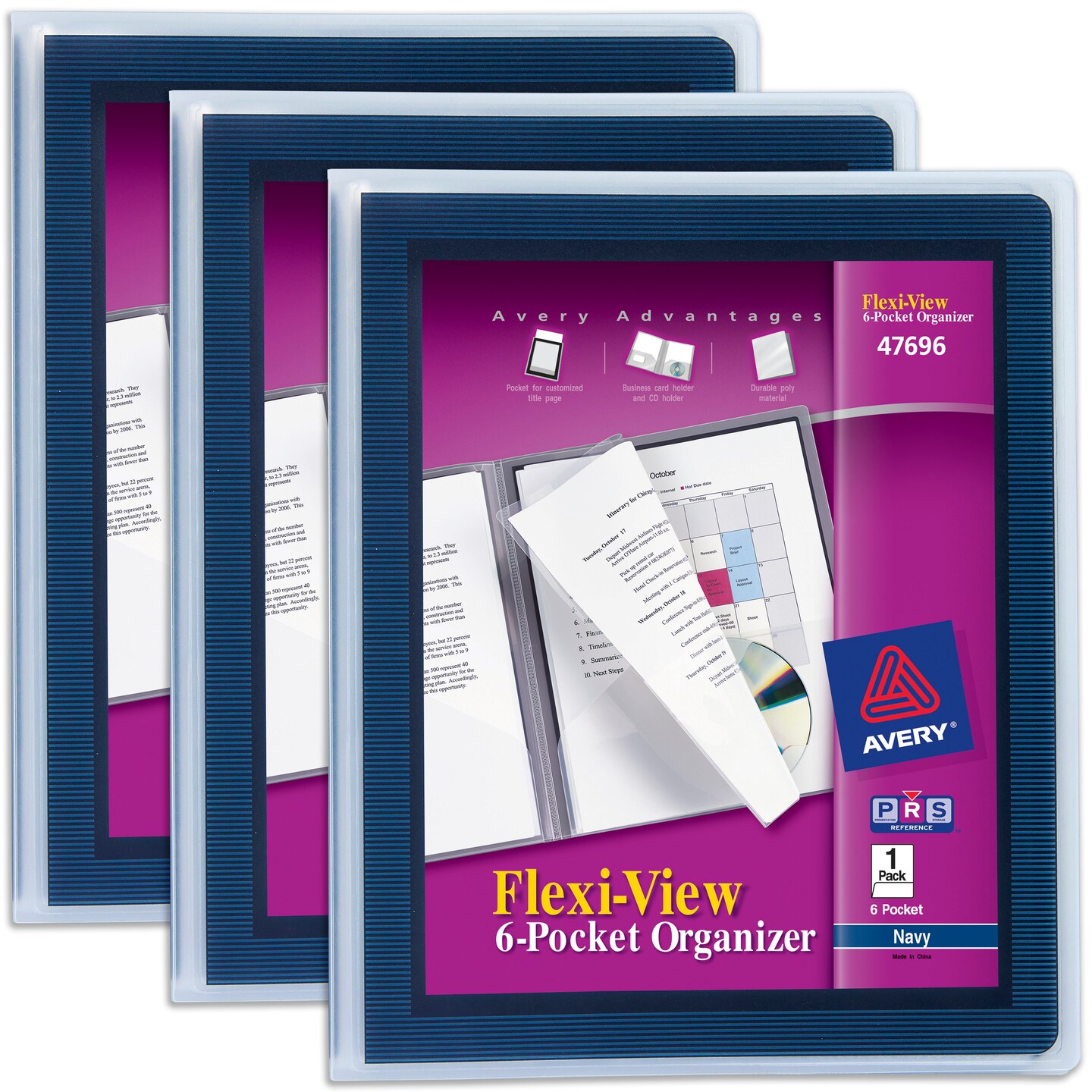 Avery Flexi-View 6 Pocket Organizer, Holds up to 150 Sheets, 3 Blue Document Organizers (47696)