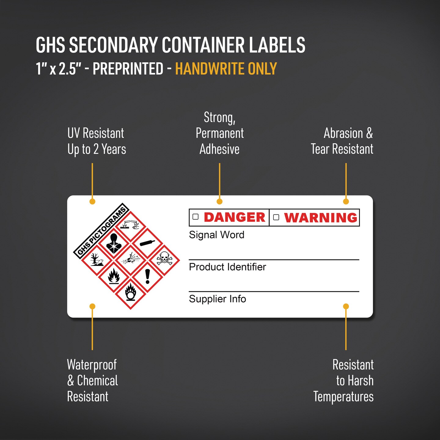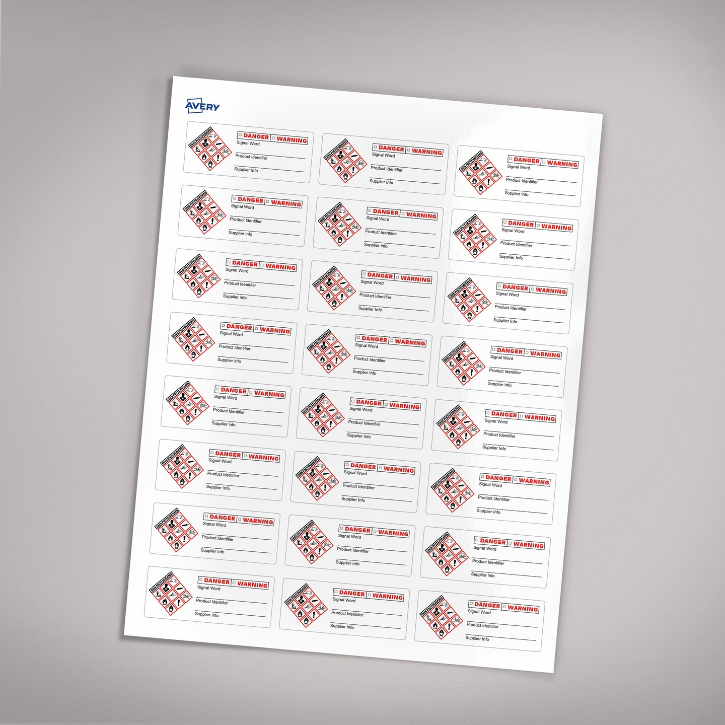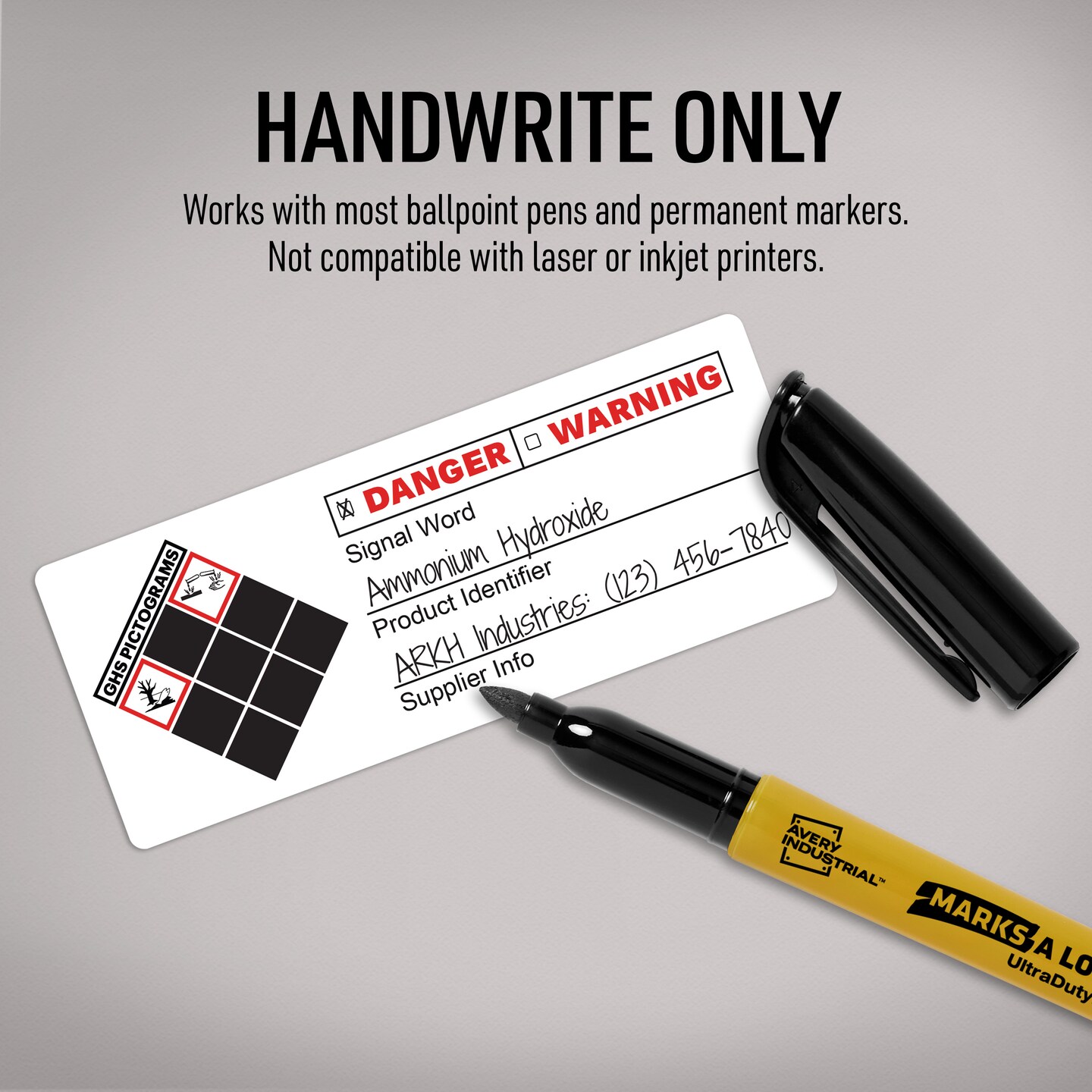 Avery GHS Secondary Container Labels, Waterproof, Chemical Resistant, Preprinted, Handwrite-Only, 1" x 2.5", 240 GHS Labels