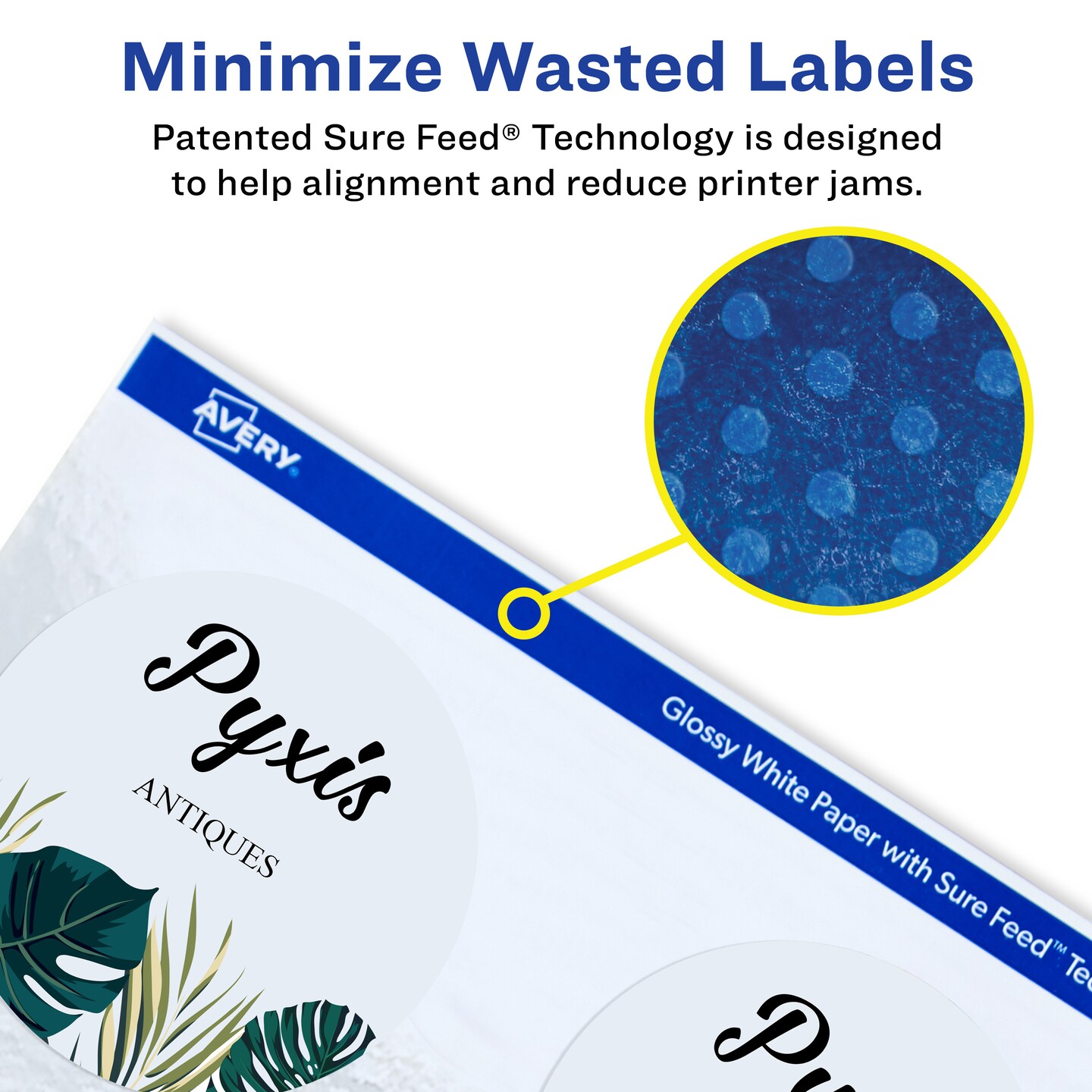 Avery Glossy White Labels, Sure Feed Technology, 3" Round Labels, Print-To-The-Edge, Laser/Inkjet, 60 Total (22891)