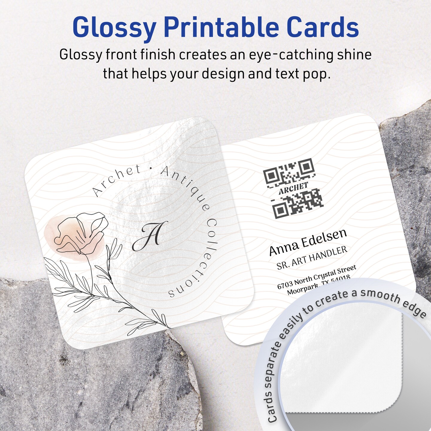 Avery Glossy White Square Cards, 3" x 3" Square Rounded Corners