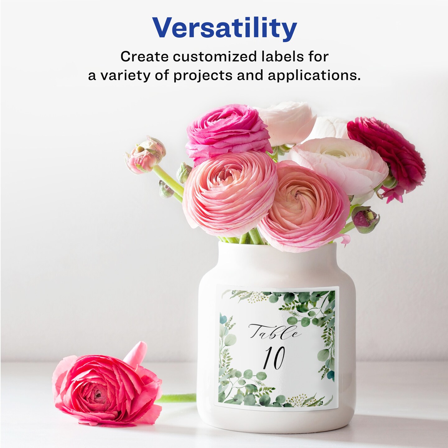 Avery Glossy White Square Labels with Sure Feed, 8" x 8"