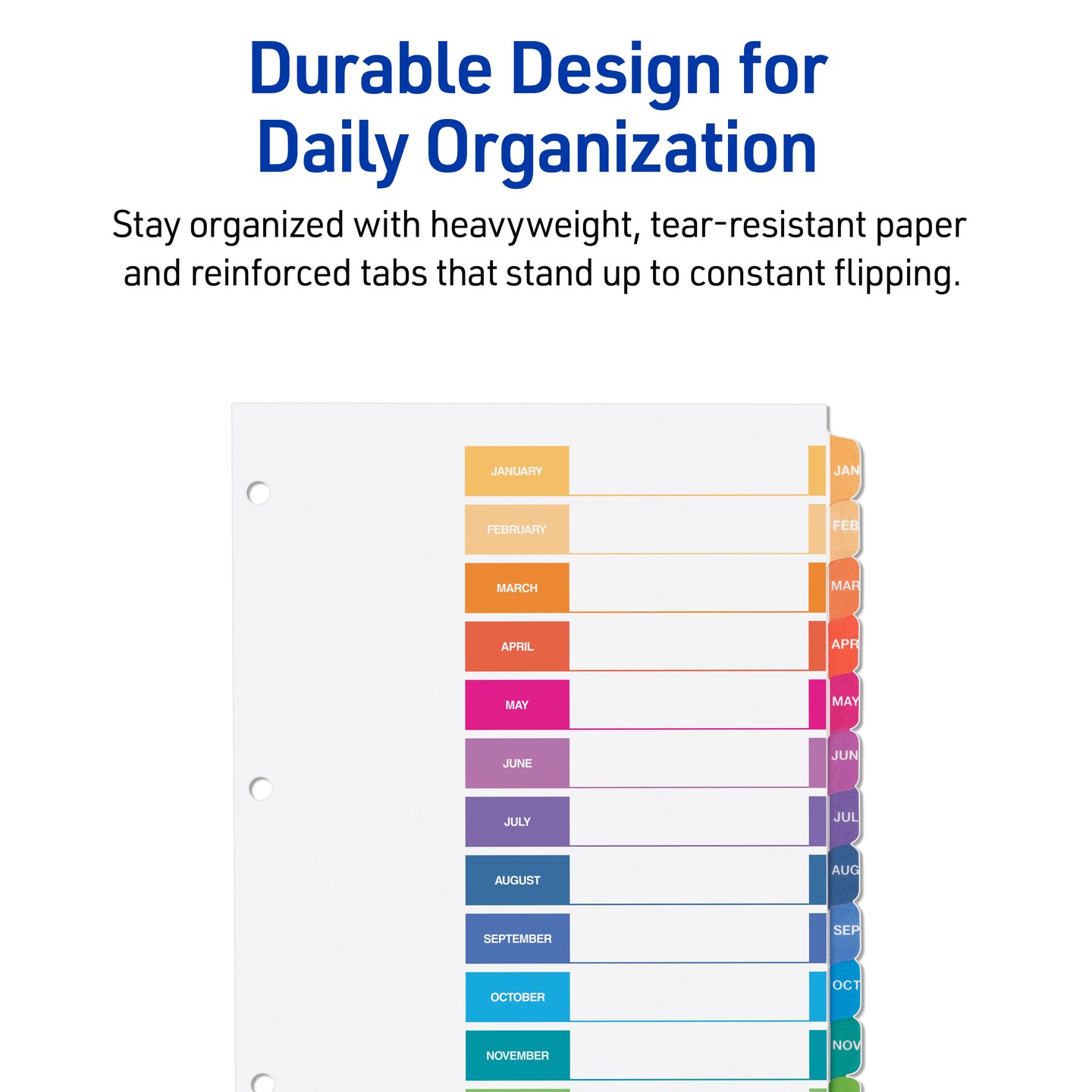 Avery Jan-Dec Dividers for 3 Ring Binders, 12 Tabs per Set, Customizable Table of Contents, Multicolor Tabs (3 Sets of 44128)