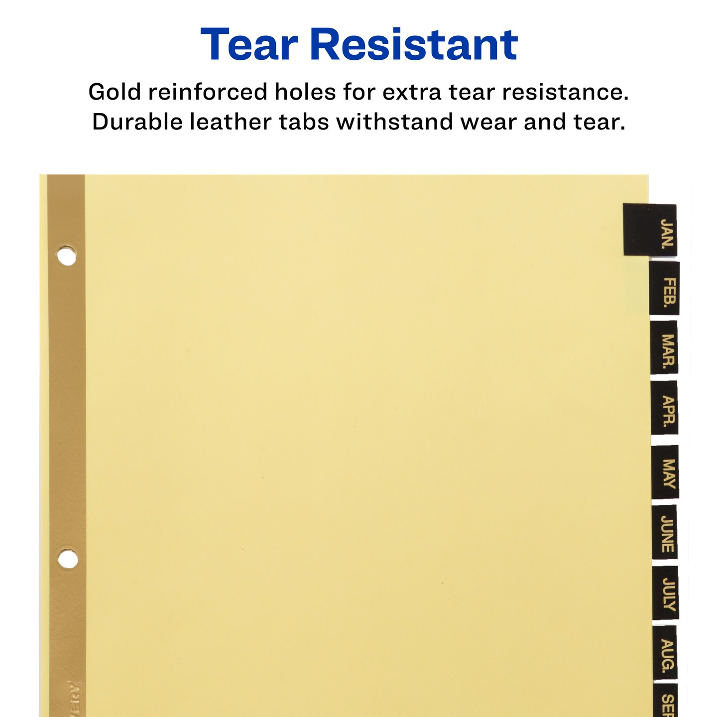 Avery Jan-Dec Dividers for 3 Ring Binders, 12-Tab Set, Pre-Printed Black Leather Tabs, 1 Binder Divider Set (11351)