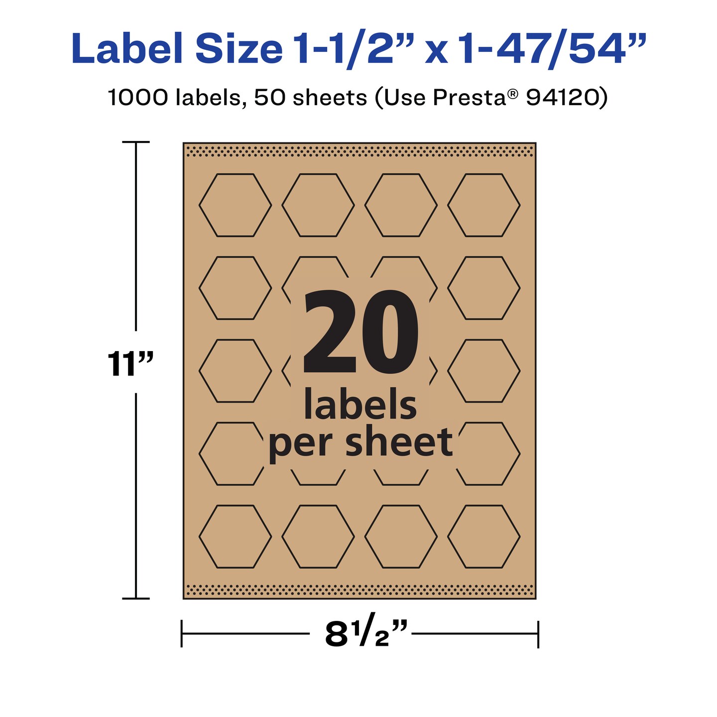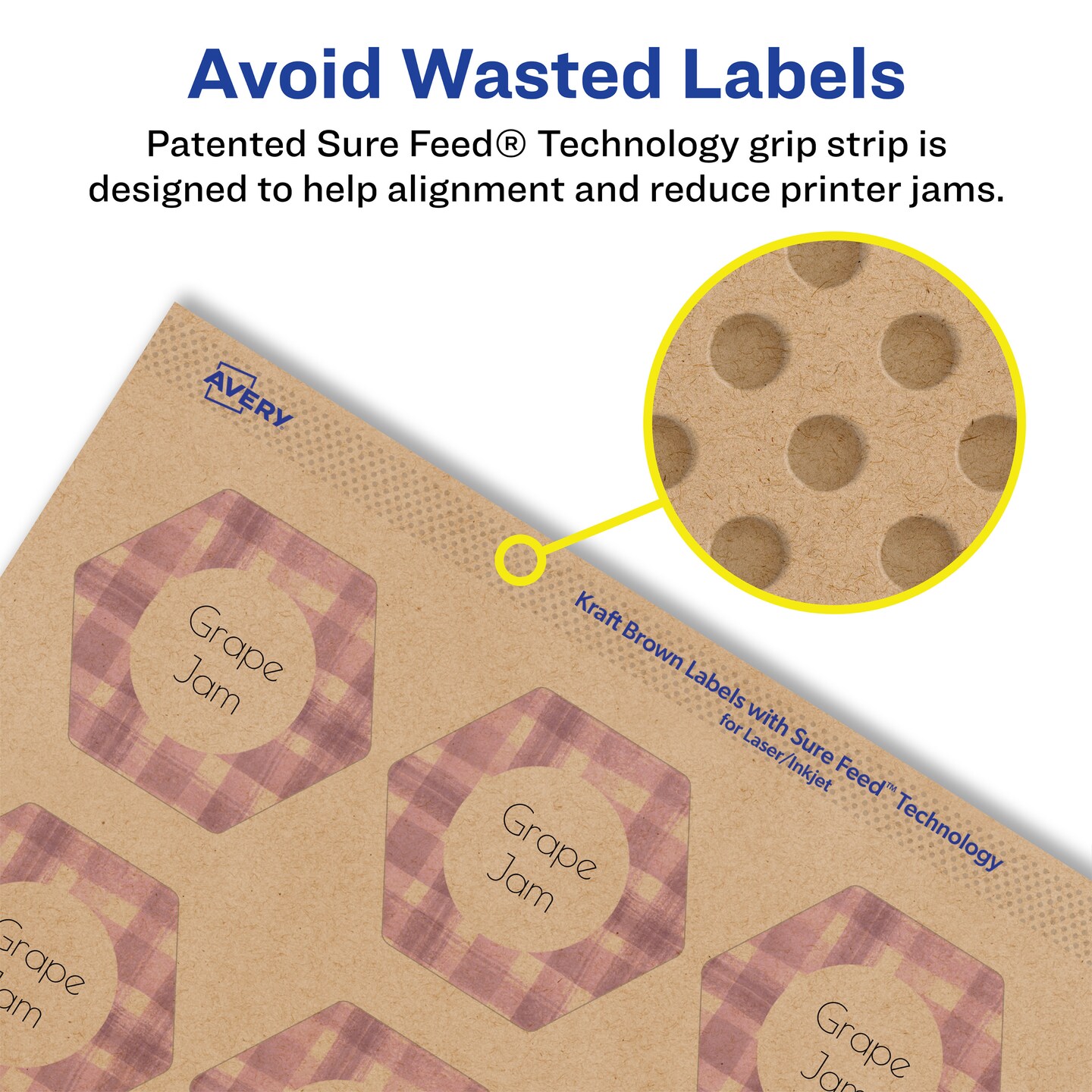 Avery Kraft Brown Hexagon Labels with Sure Feed, 1-1/2" x 1-47/54"