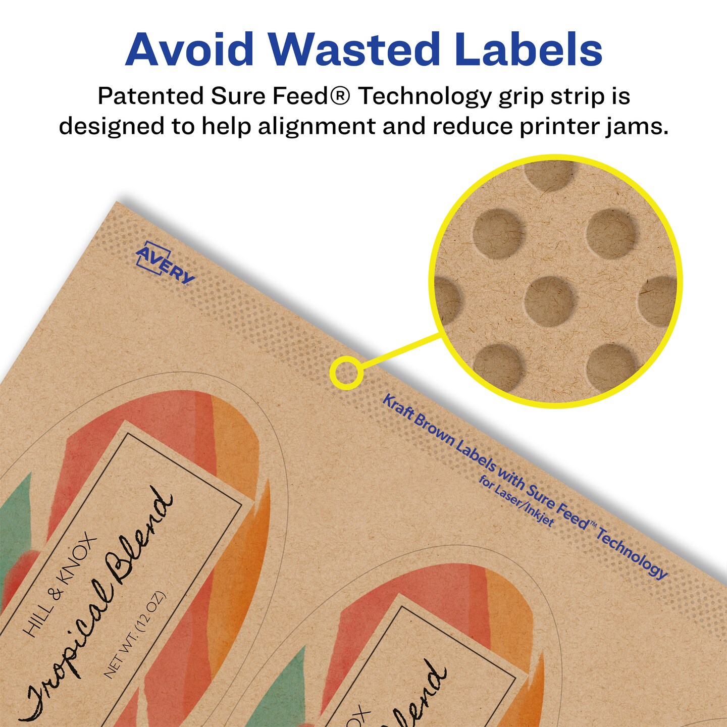 Avery Kraft Brown Oval Labels with Sure Feed, 4.25" x 3.25"