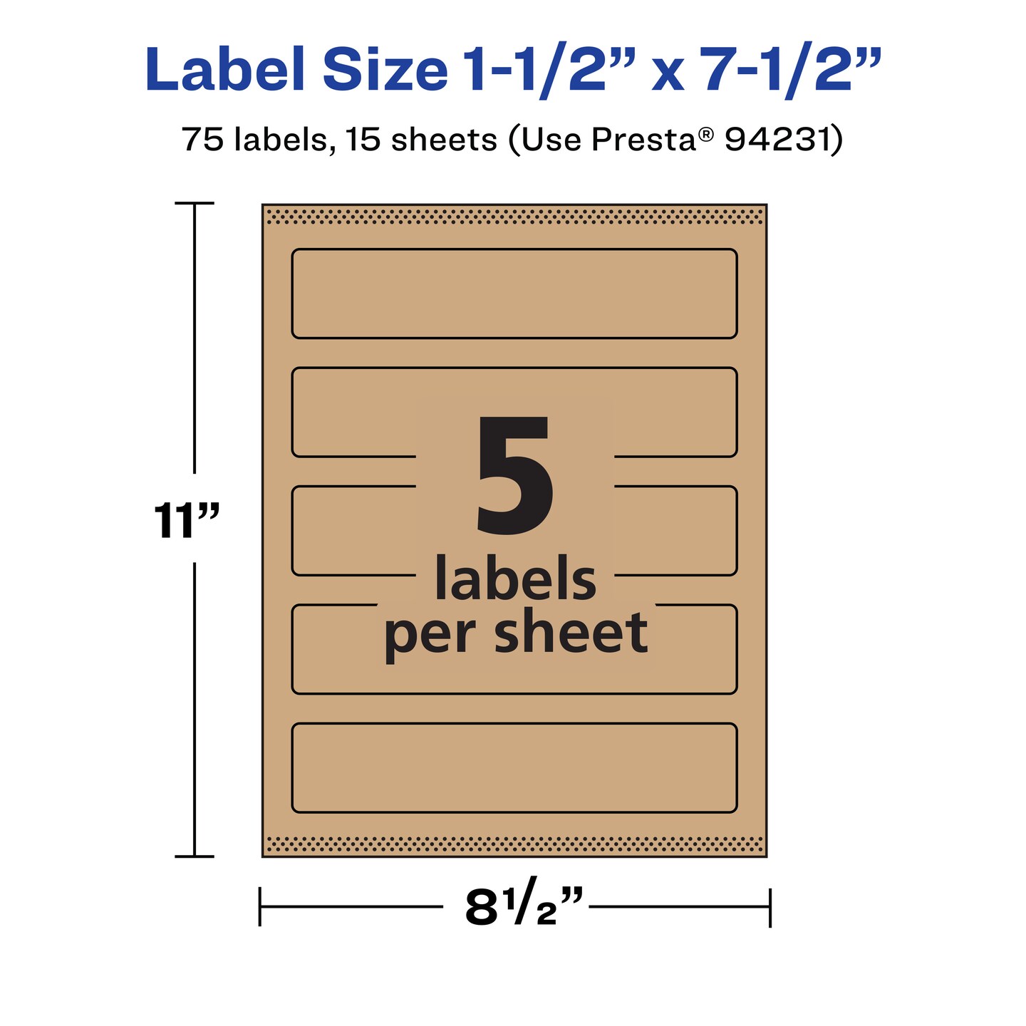 Avery Kraft Brown Rectangle Labels with Sure Feed, 1.5" x 7.5"