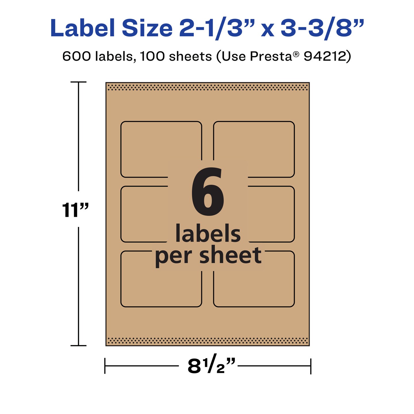 Avery Kraft Brown Rectangle Labels with Sure Feed, 2-1/3" x 3-3/8"