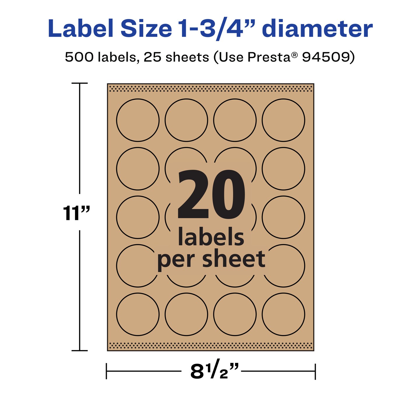 Avery Kraft Brown Round Labels with Sure Feed, 1.75" diameter