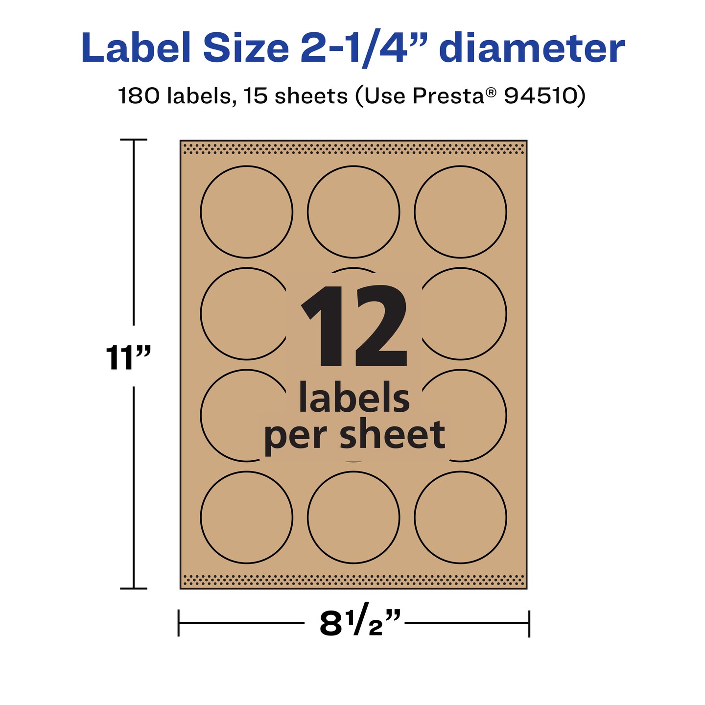 Avery Kraft Brown Round Labels with Sure Feed, 2.25" diameter
