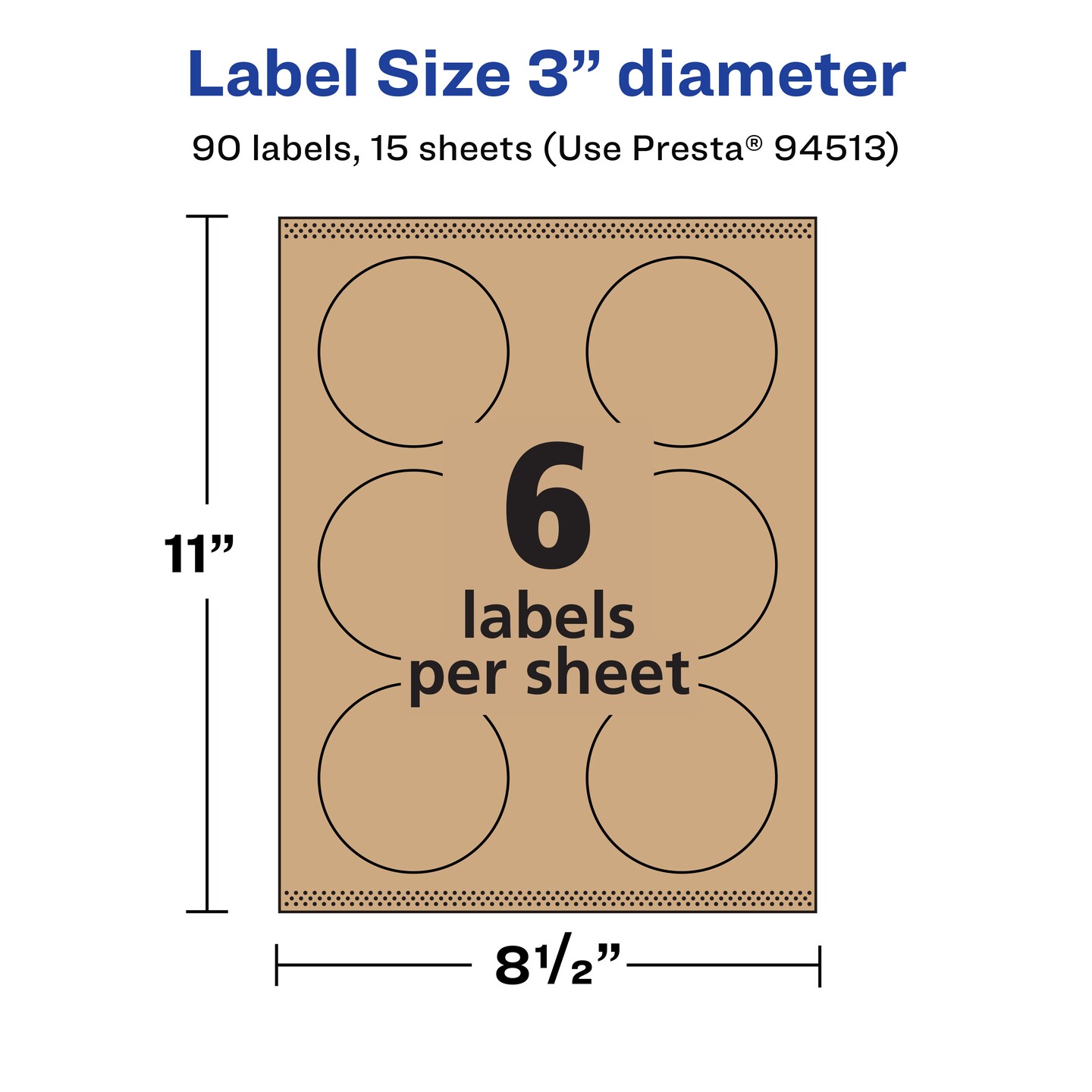 Avery Kraft Brown Round Labels with Sure Feed, 3" diameter