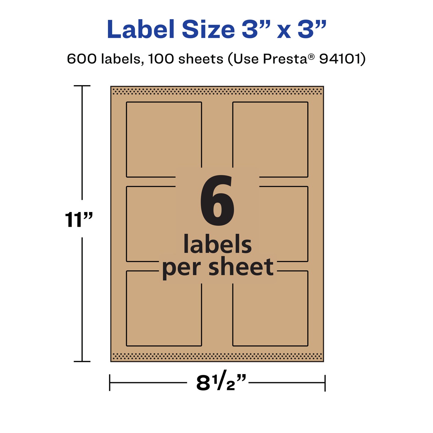 Avery Kraft Brown Square Labels with Sure Feed, 3" x 3"