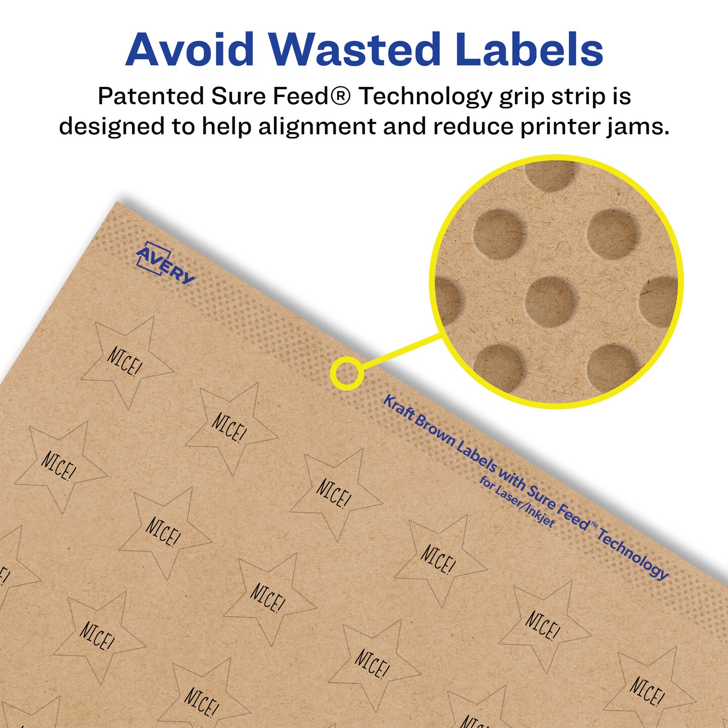 Avery Kraft Brown Star Labels with Sure Feed, .75" x .75"