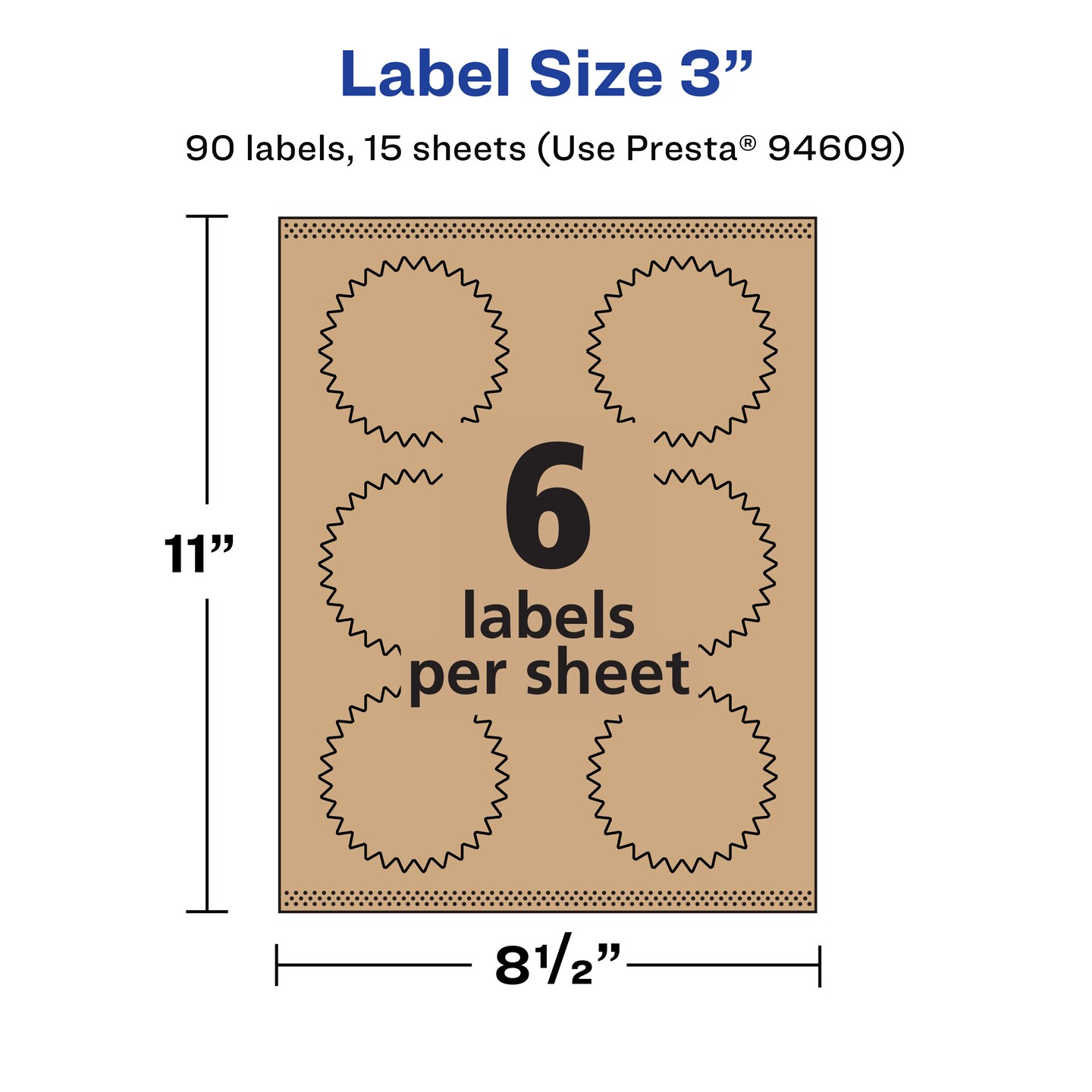 Avery Kraft Brown Starburst Labels with Sure Feed, 3"