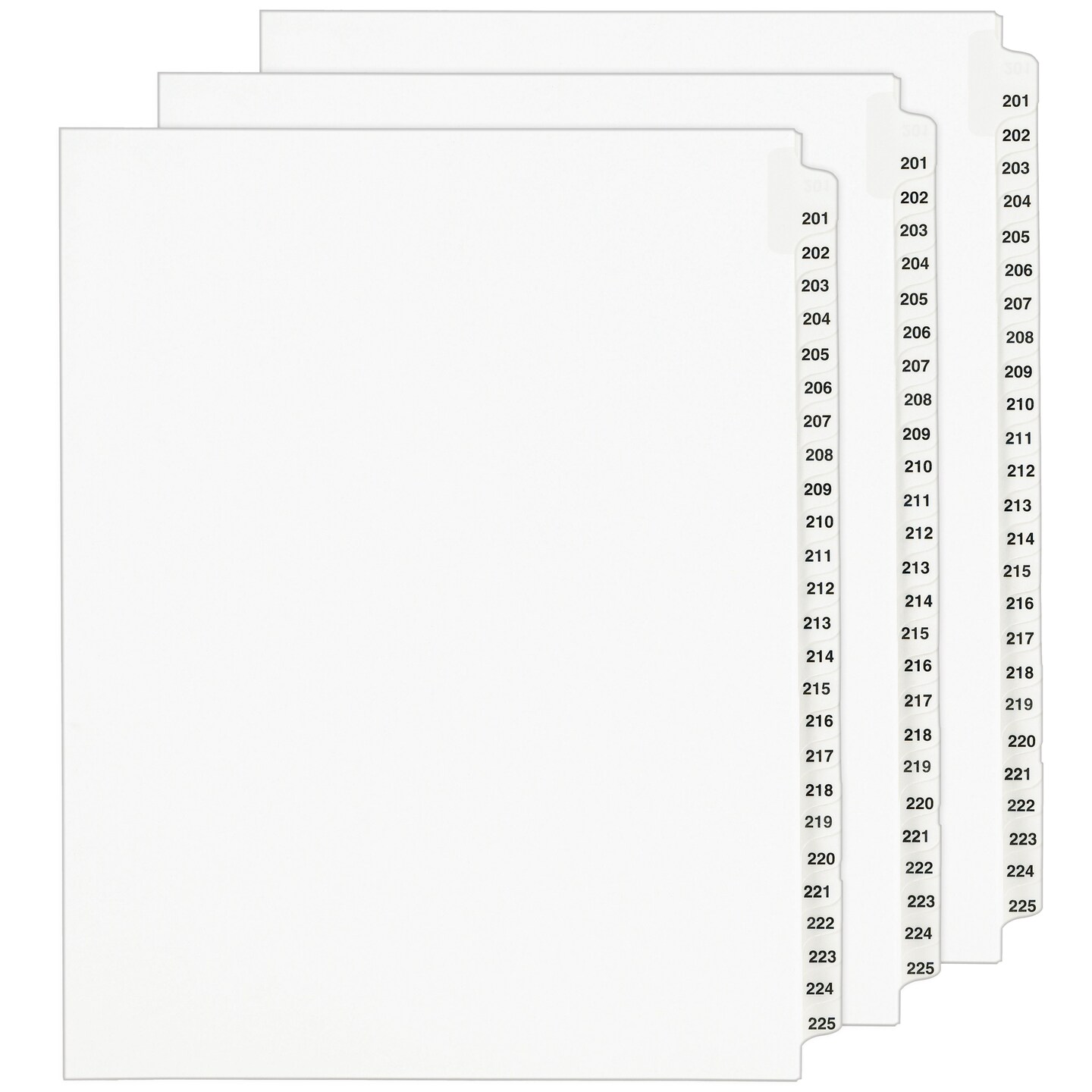 Avery Legal Exhibit Unpunched Dividers for Use with Any Binding System, Collated 201-225, 25 Side Tab Dividers Per Set, Helvetica Bold Type, 3 Sets (21862)