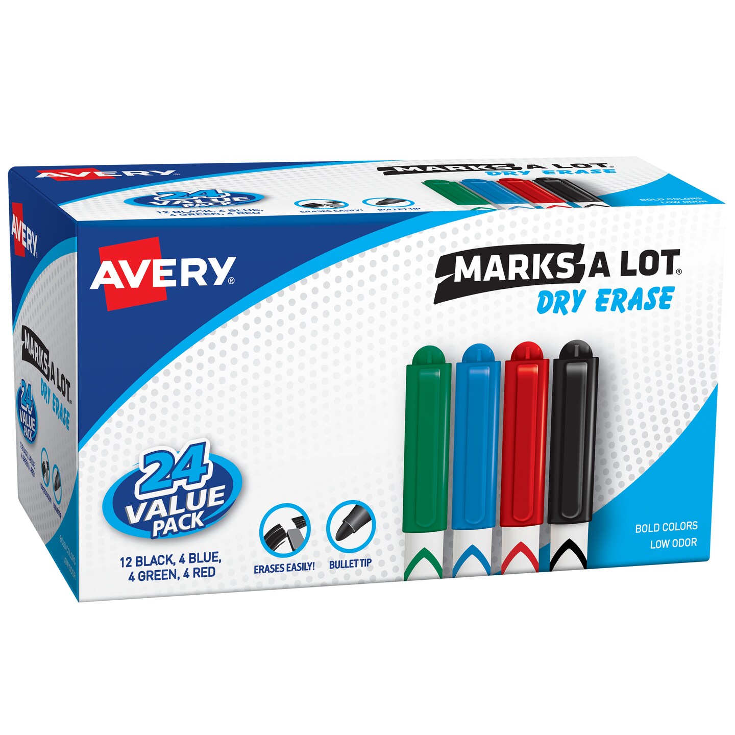 Avery Marks A Lot Pen-Style Dry Erase Markers, Bullet Tip, Assorted Colors, Value Pack of 24 (29860)
