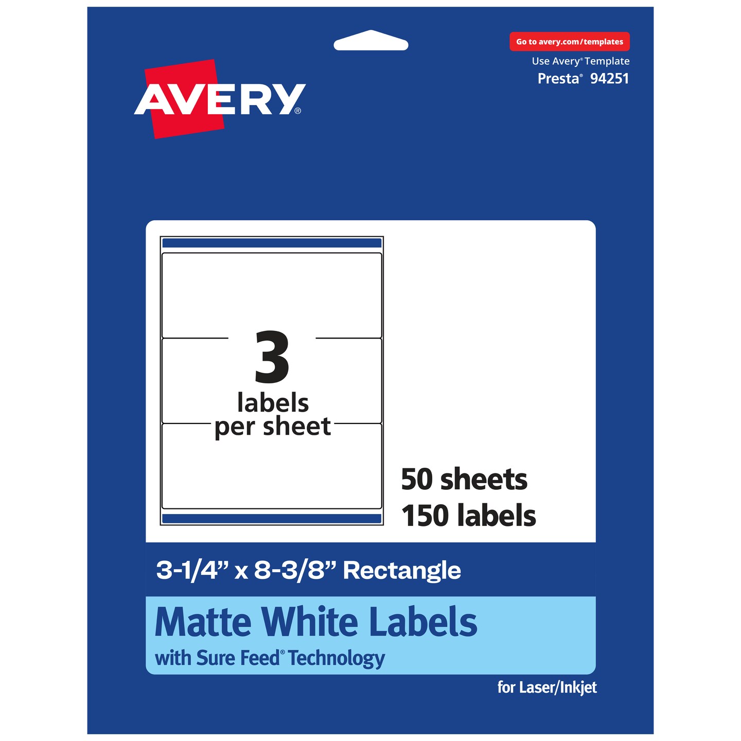 Avery Matte White Rectangle Labels, 3-1/4" x 8-3/8"