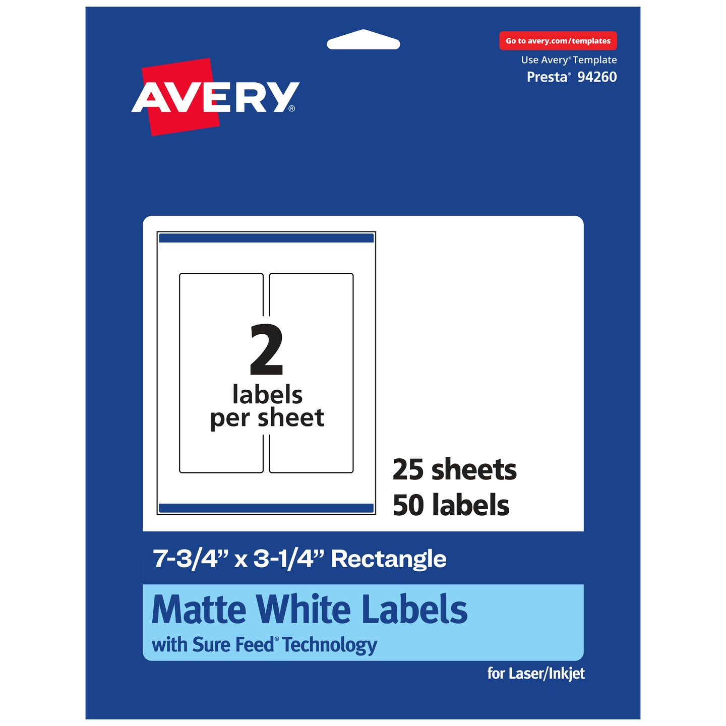 Avery Matte White Rectangle Labels, 7.75" x 3.25"