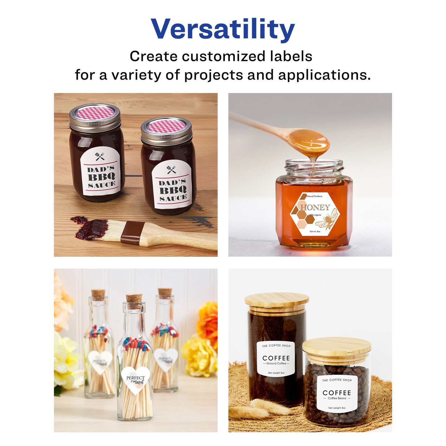 Avery Matte White Removable Arched Square Labels with Sure Feed Technology, Print-to-the-Edge, 2" x 2-3/16"