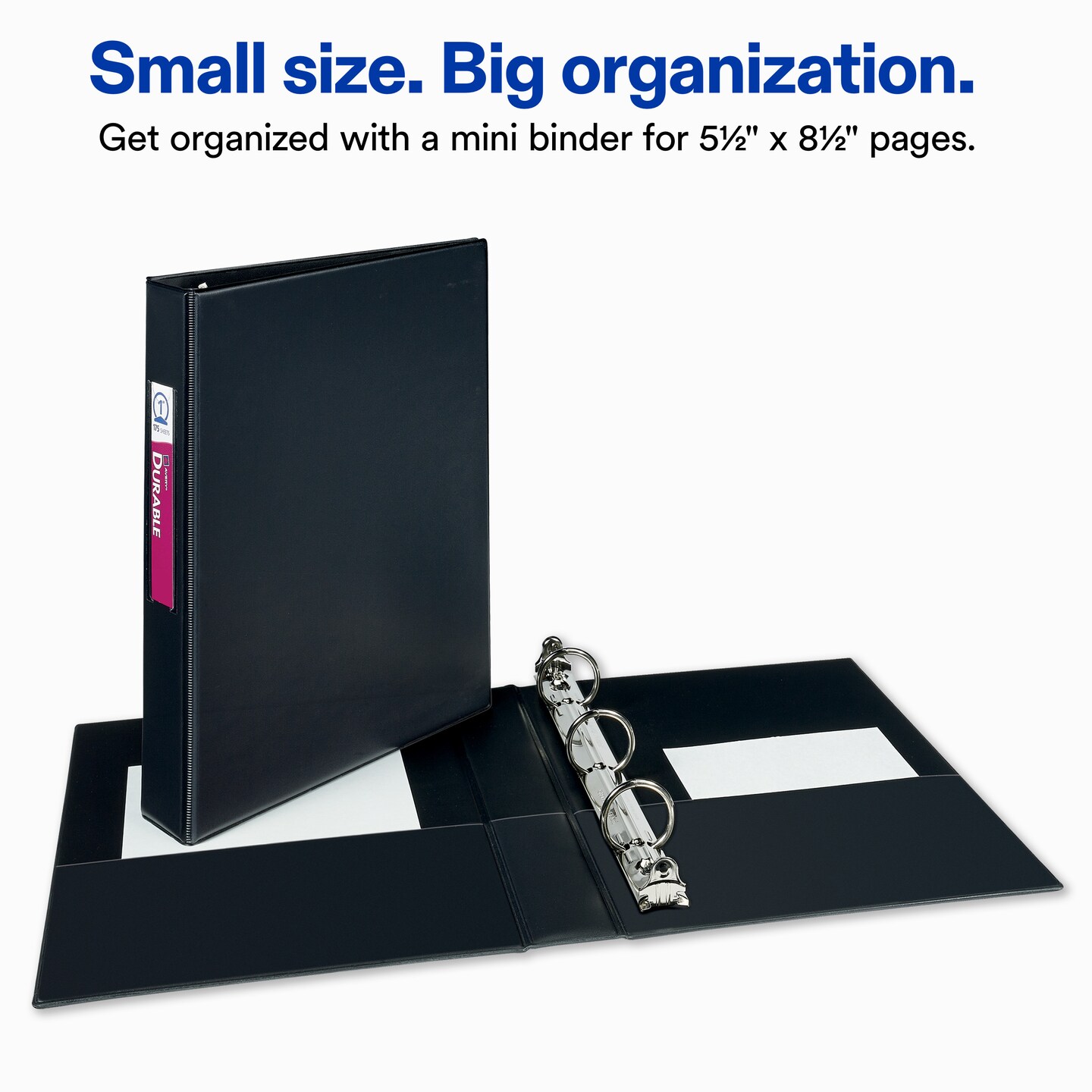 Avery Mini 3 Ring Binders, Holds 5.5" x 8.5" Paper, 1" Round Rings, 175-Sheet Capacity, 1.4 Inch Wide Spine, Label Holder, Black Binders (2-Pack of 13456)
