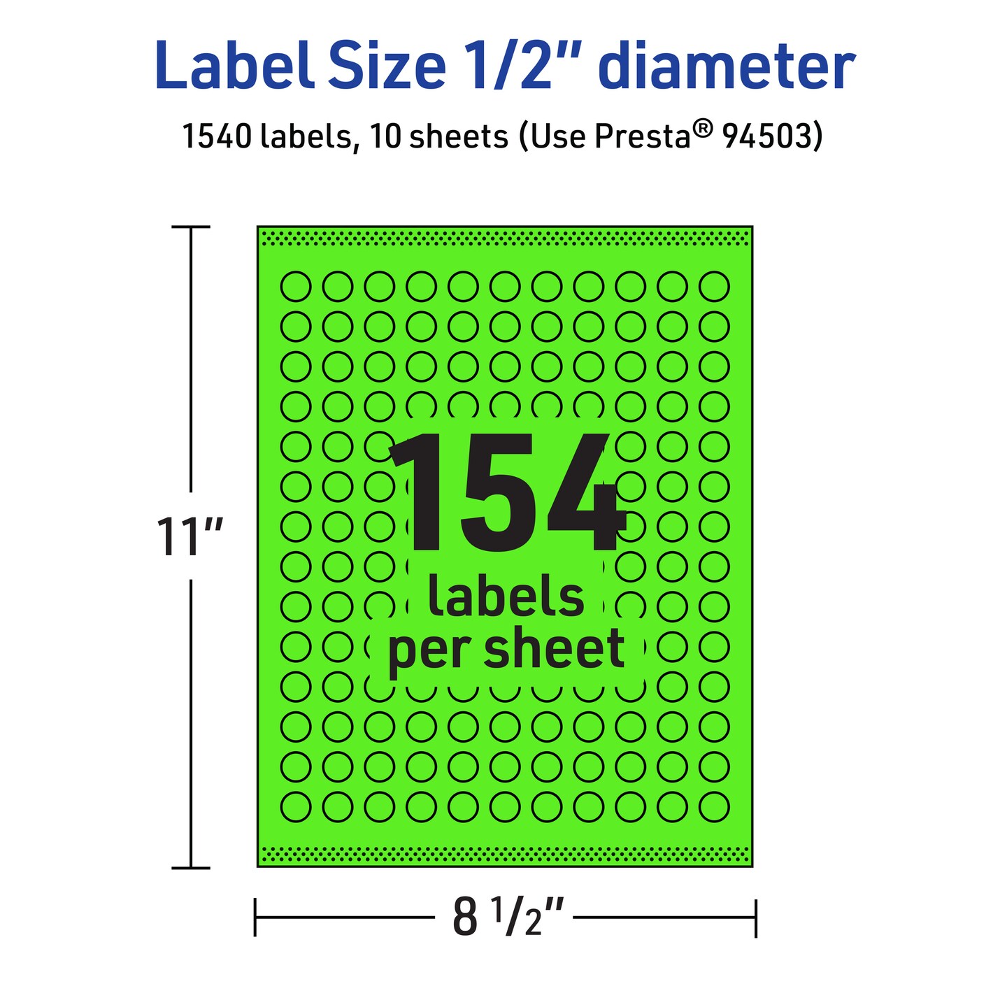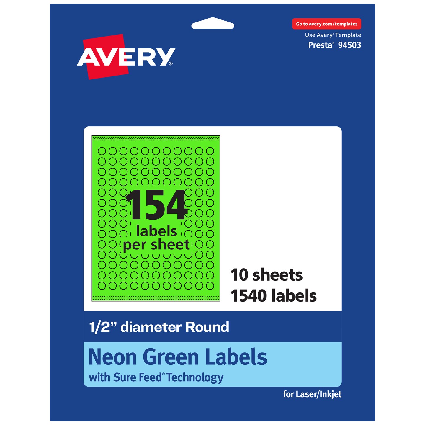 Avery Neon Green Paper Labels, 0.5" Diameter Round
