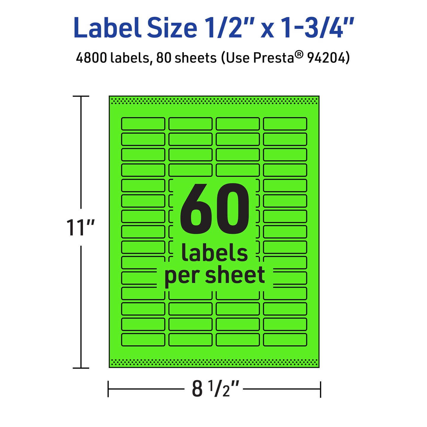 Avery Neon Green Paper Labels, 0.5" x 1.75" Rectangle