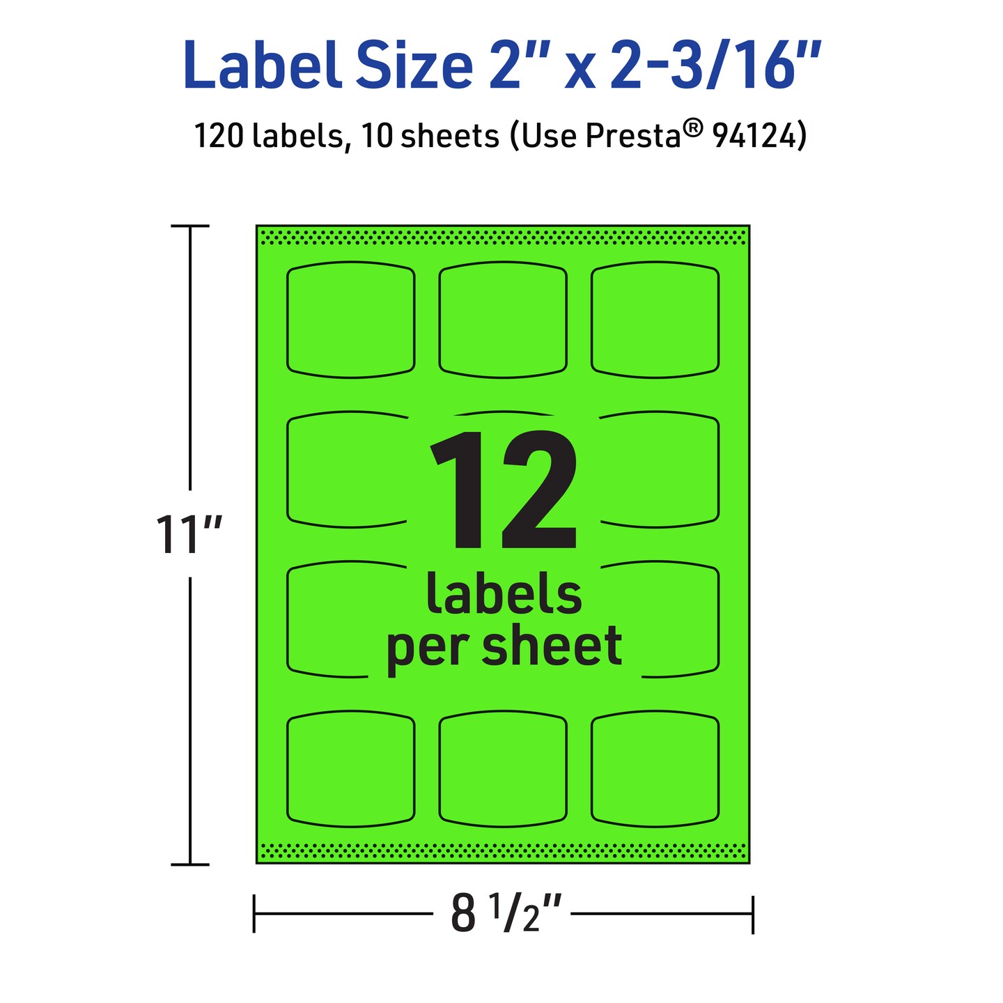 Avery Neon Green Paper Labels, 2" x 2-3/16" Arched Square