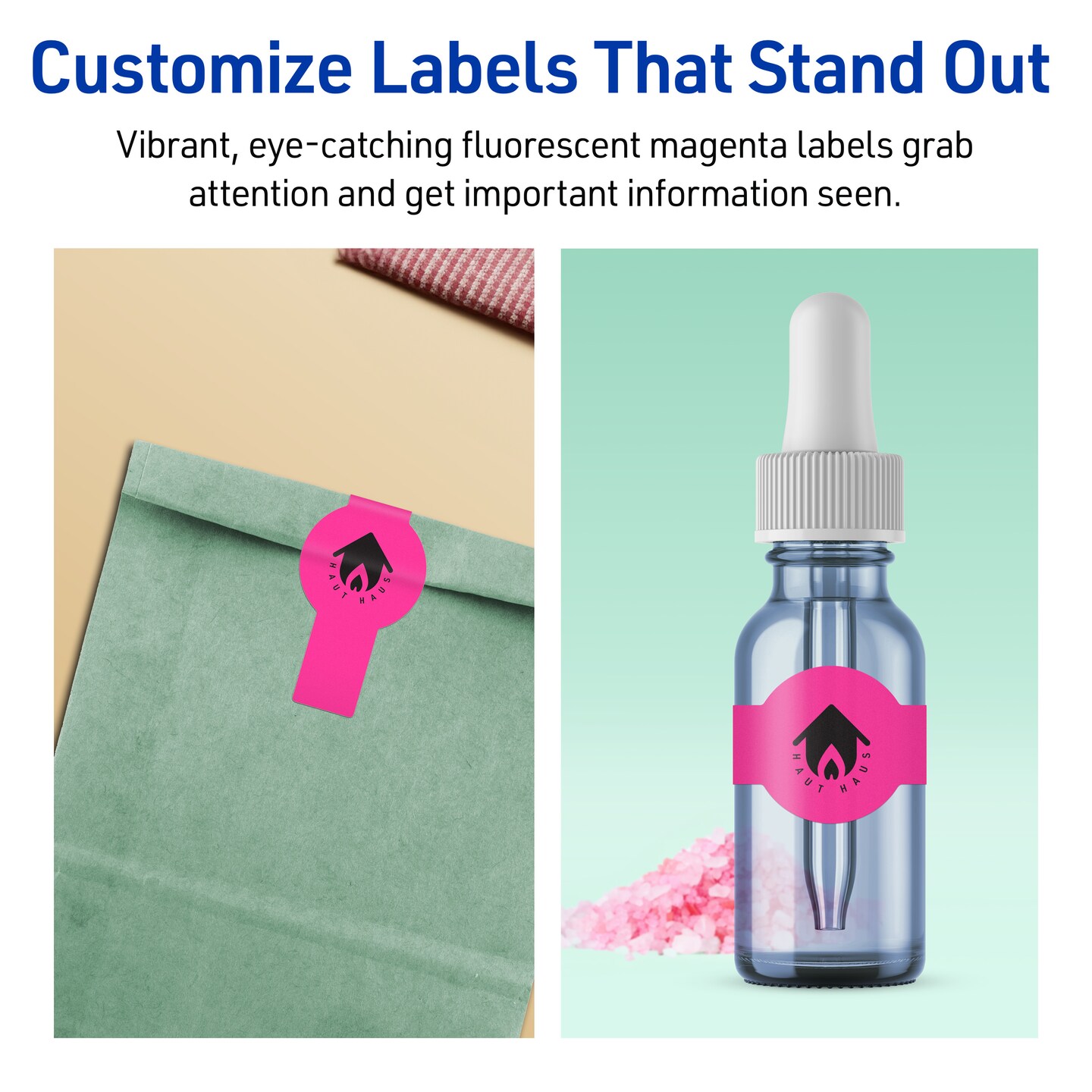 Avery Neon Magenta Paper Labels, 1.5" x 3.5" Wraparound