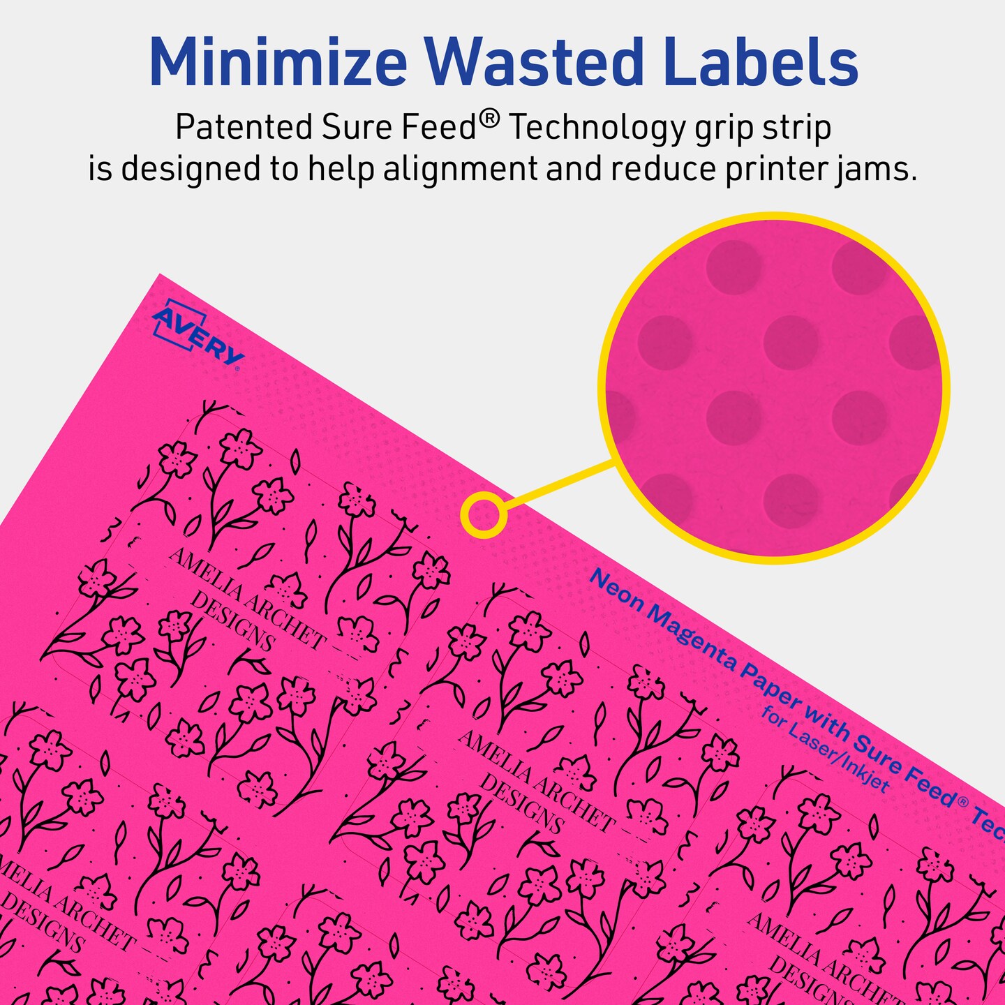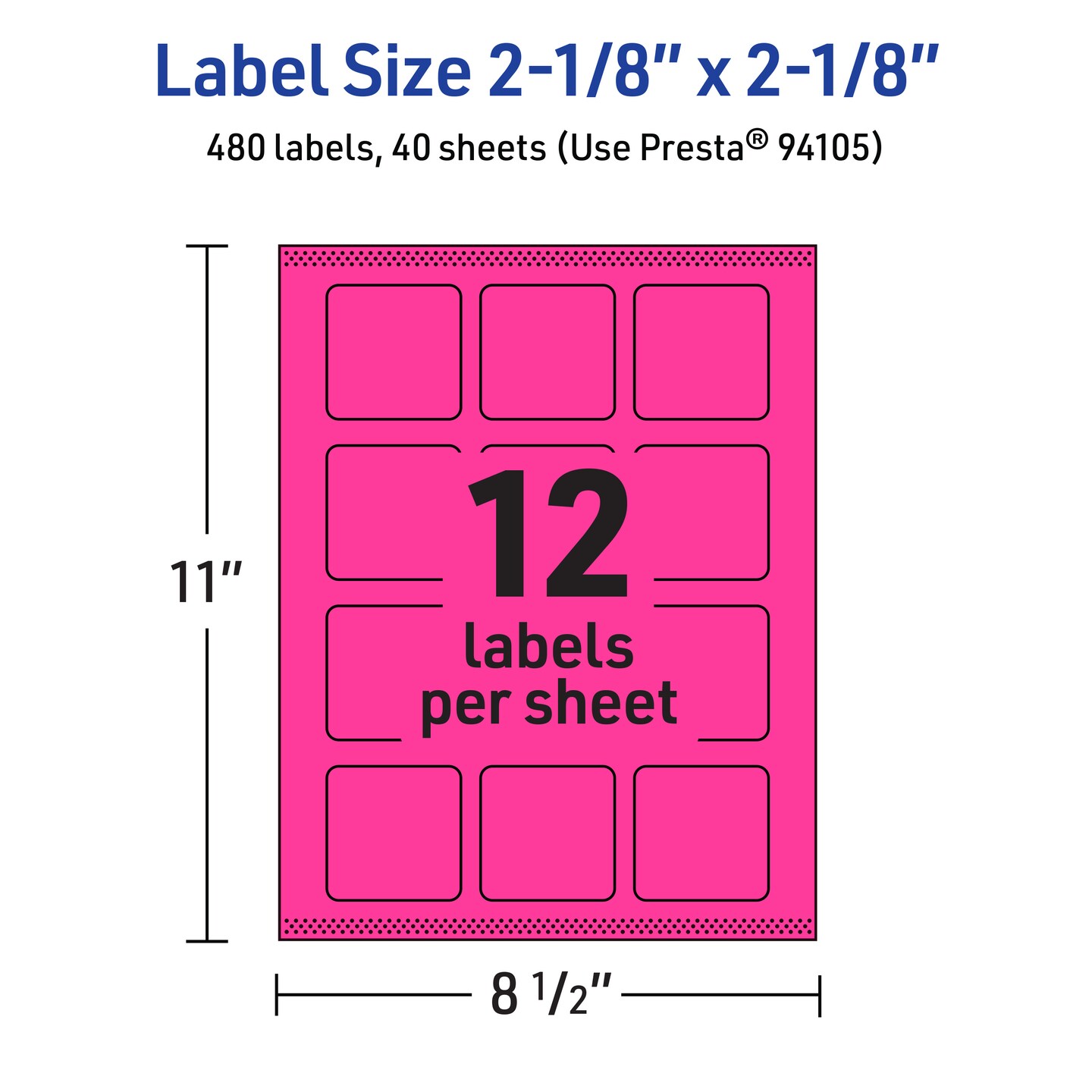 Avery Neon Magenta Paper Labels, 2-1/8" x 2-1/8" Square