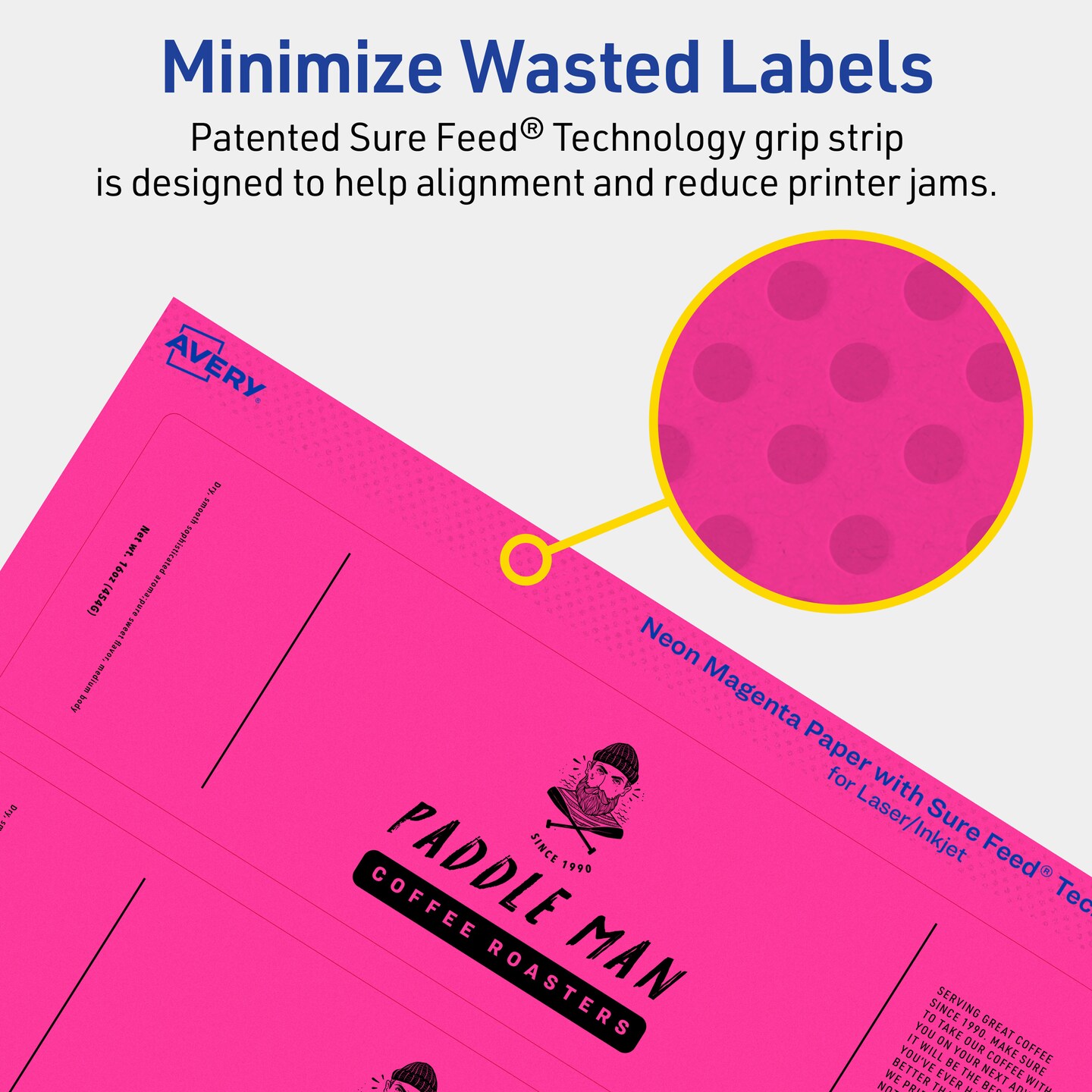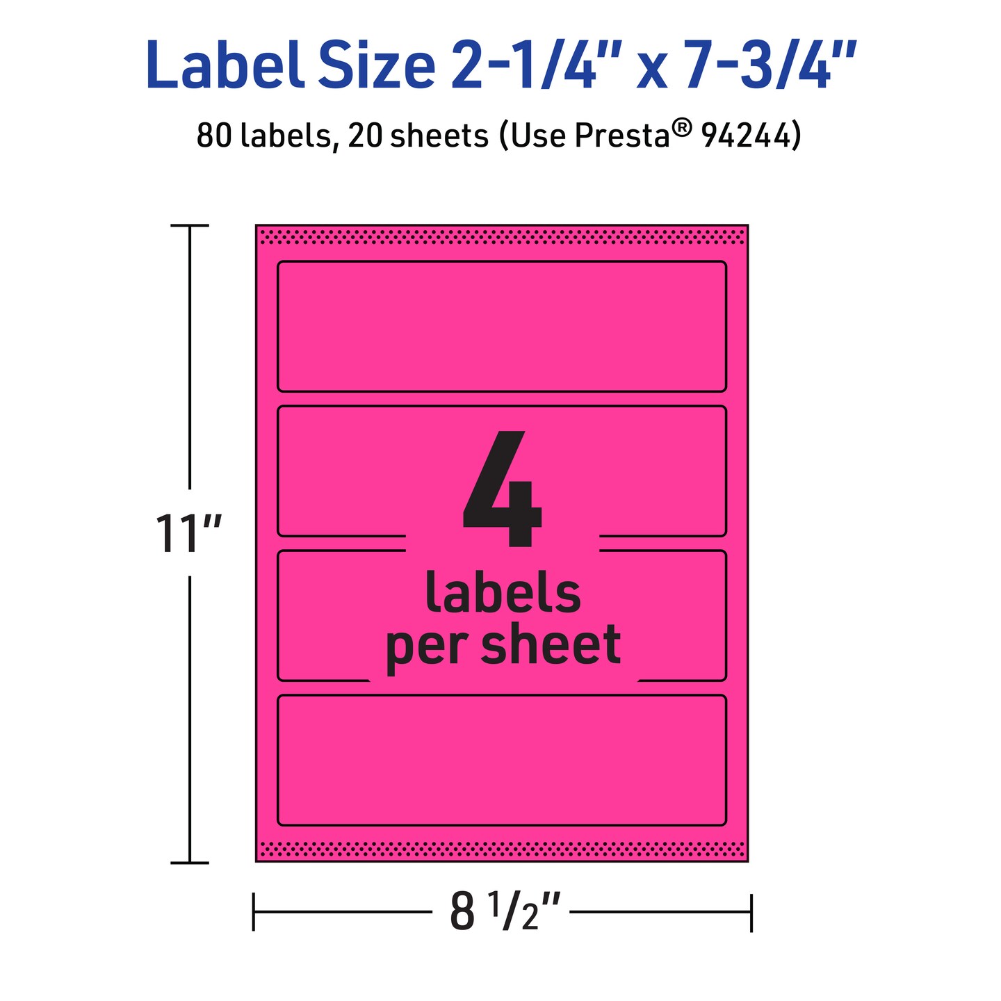 Avery Neon Magenta Paper Labels, 2.25" x 7.75" Rectangle