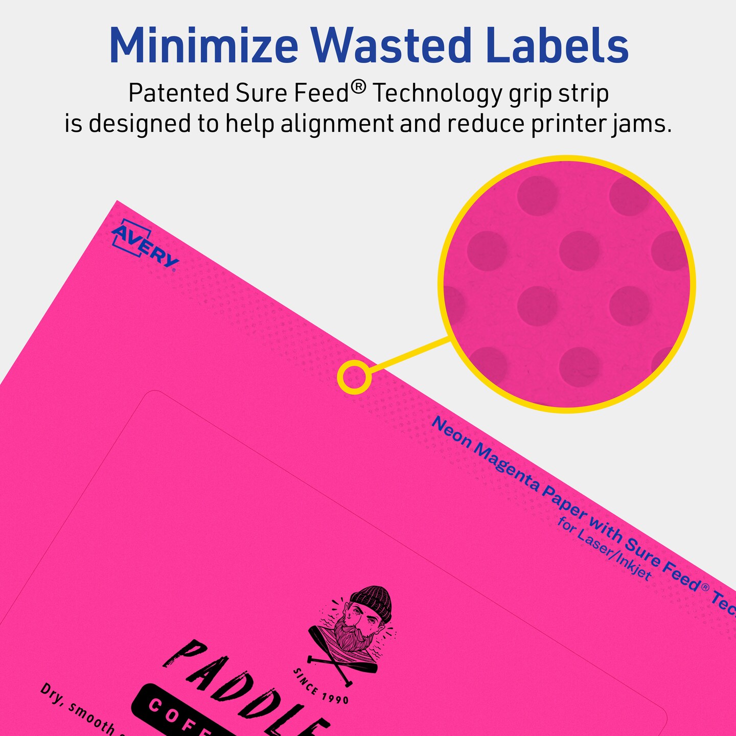 Avery Neon Magenta Paper Labels, 4" x 6" Rectangle
