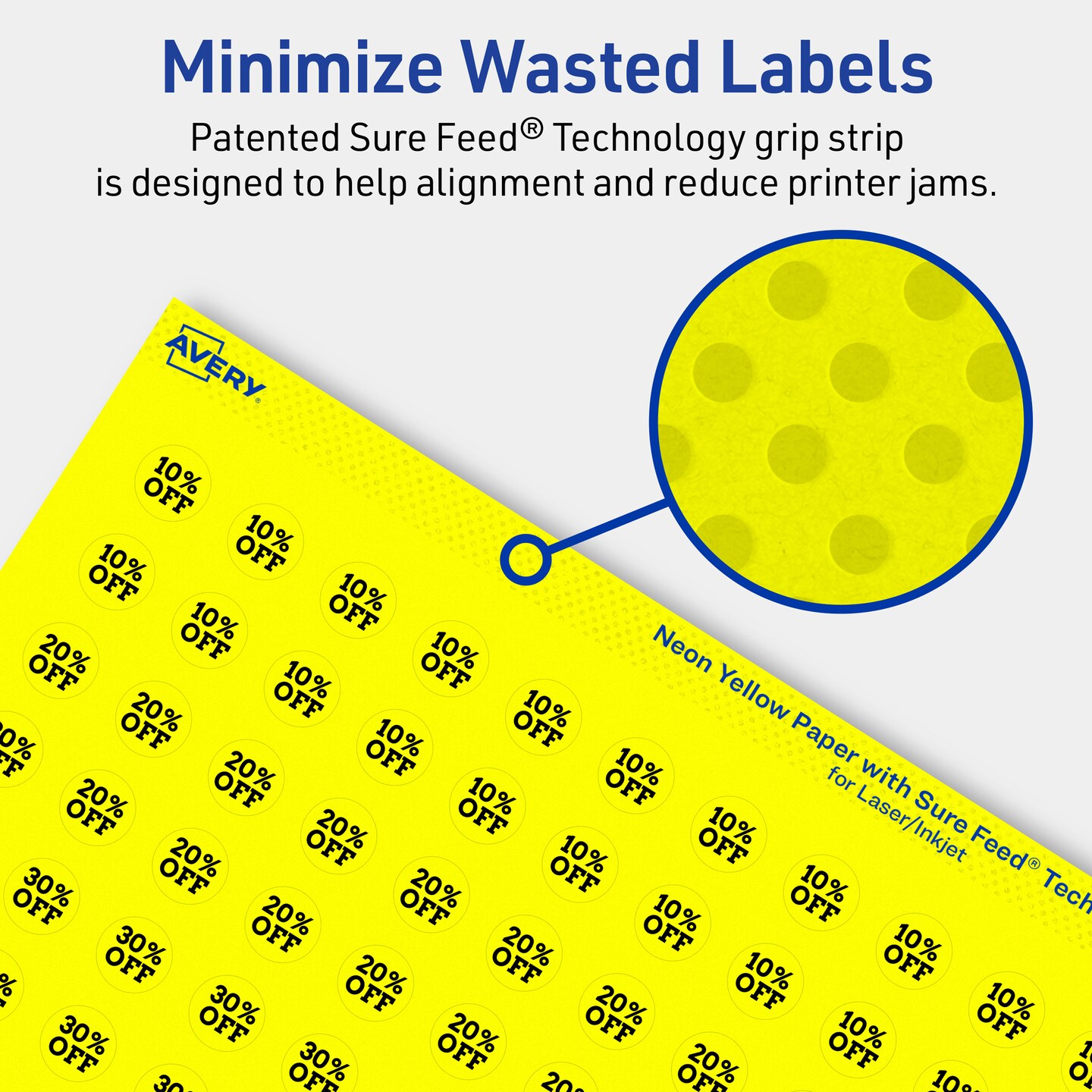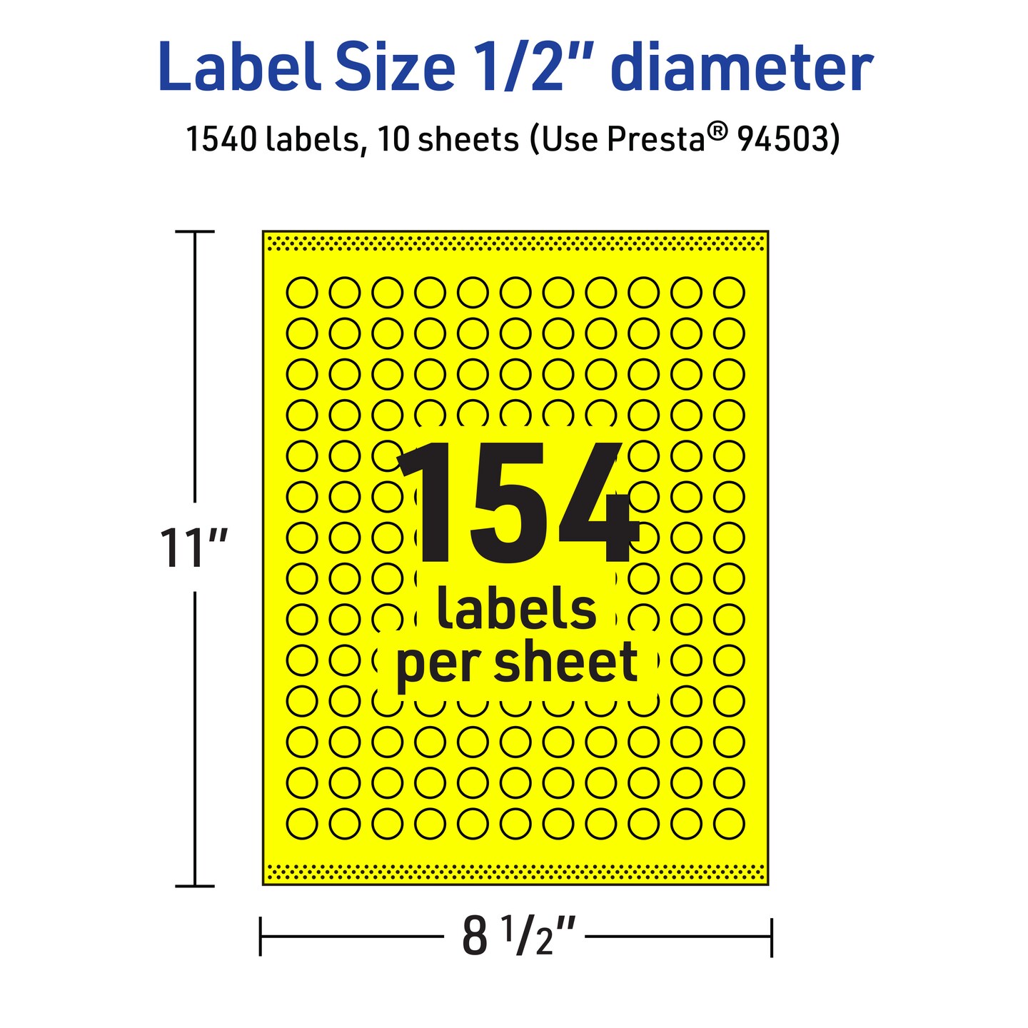 Avery Neon Yellow Paper Labels, 0.5" Diameter Round