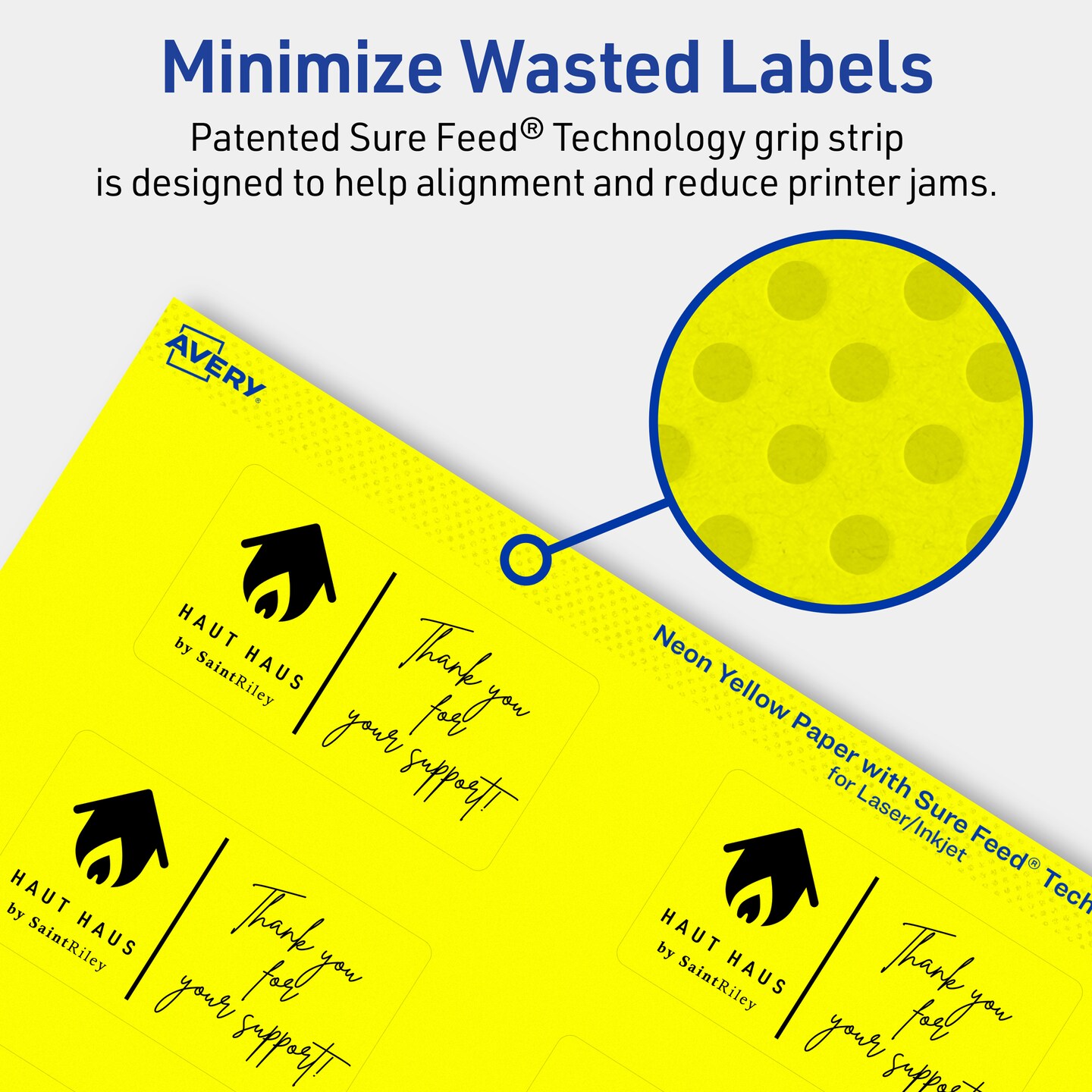 Avery Neon Yellow Paper Labels, 1.5" x 2.75" Rectangle