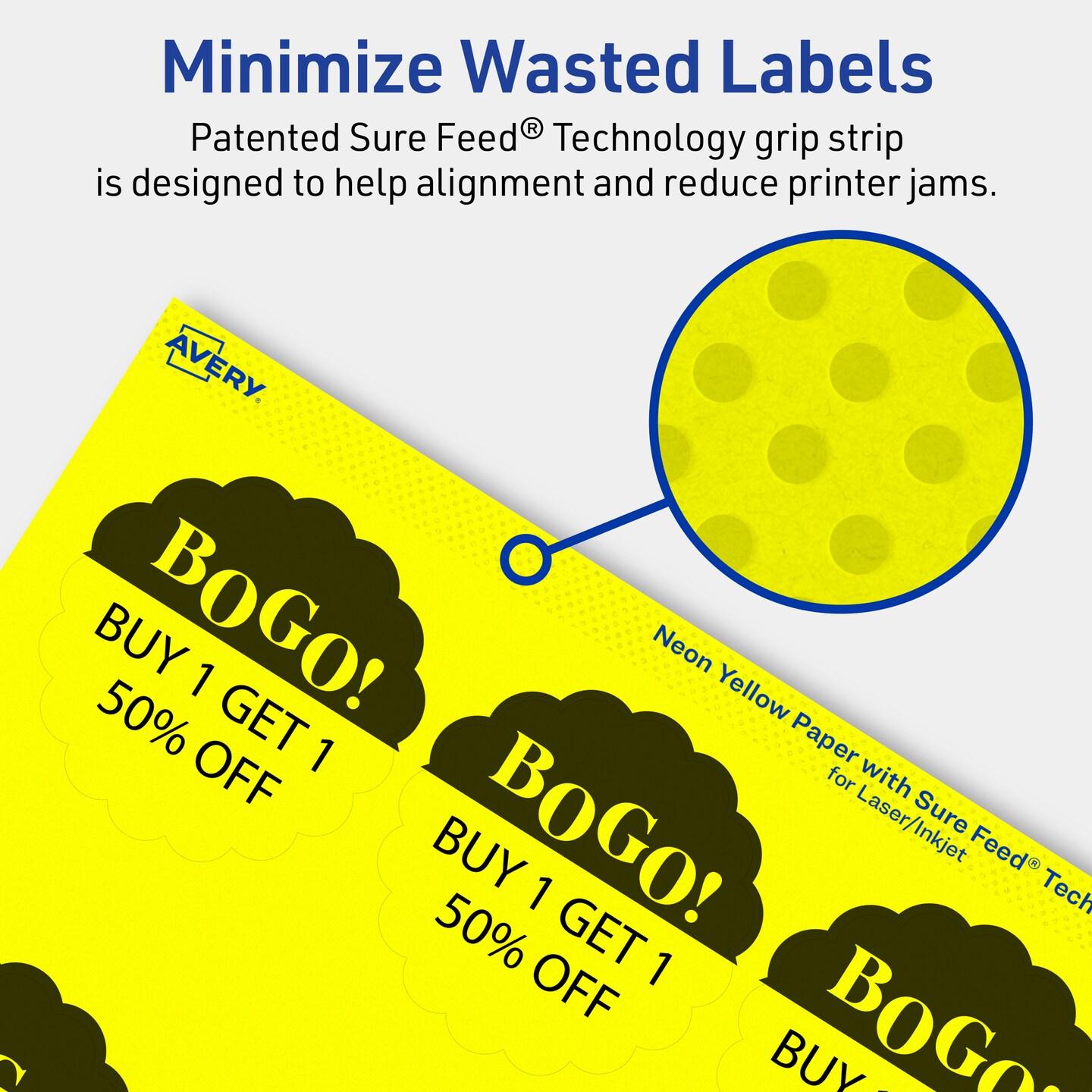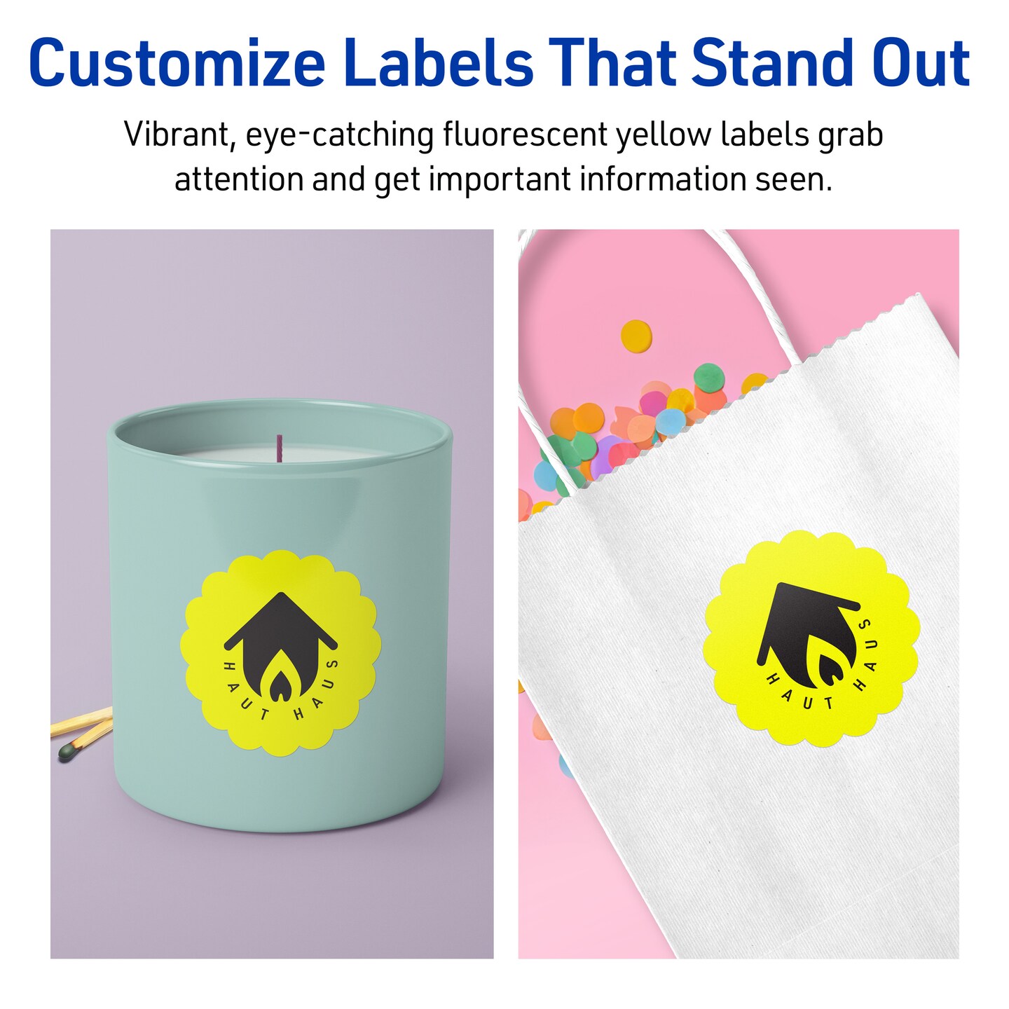 Avery Neon Yellow Paper Labels, 2.5" Diameter Round Scalloped