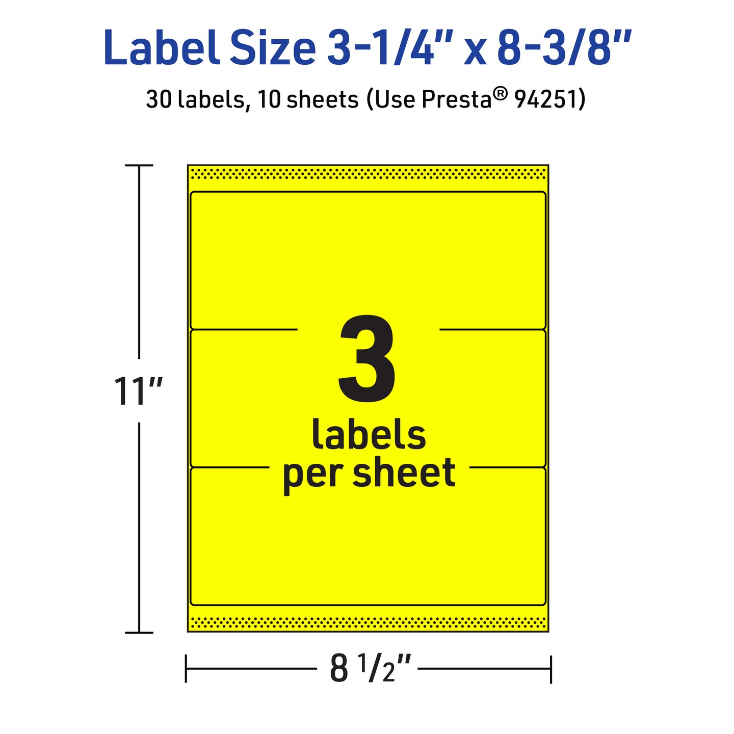 Avery Neon Yellow Paper Labels, 3-1/4" x 8-3/8" Rectangle
