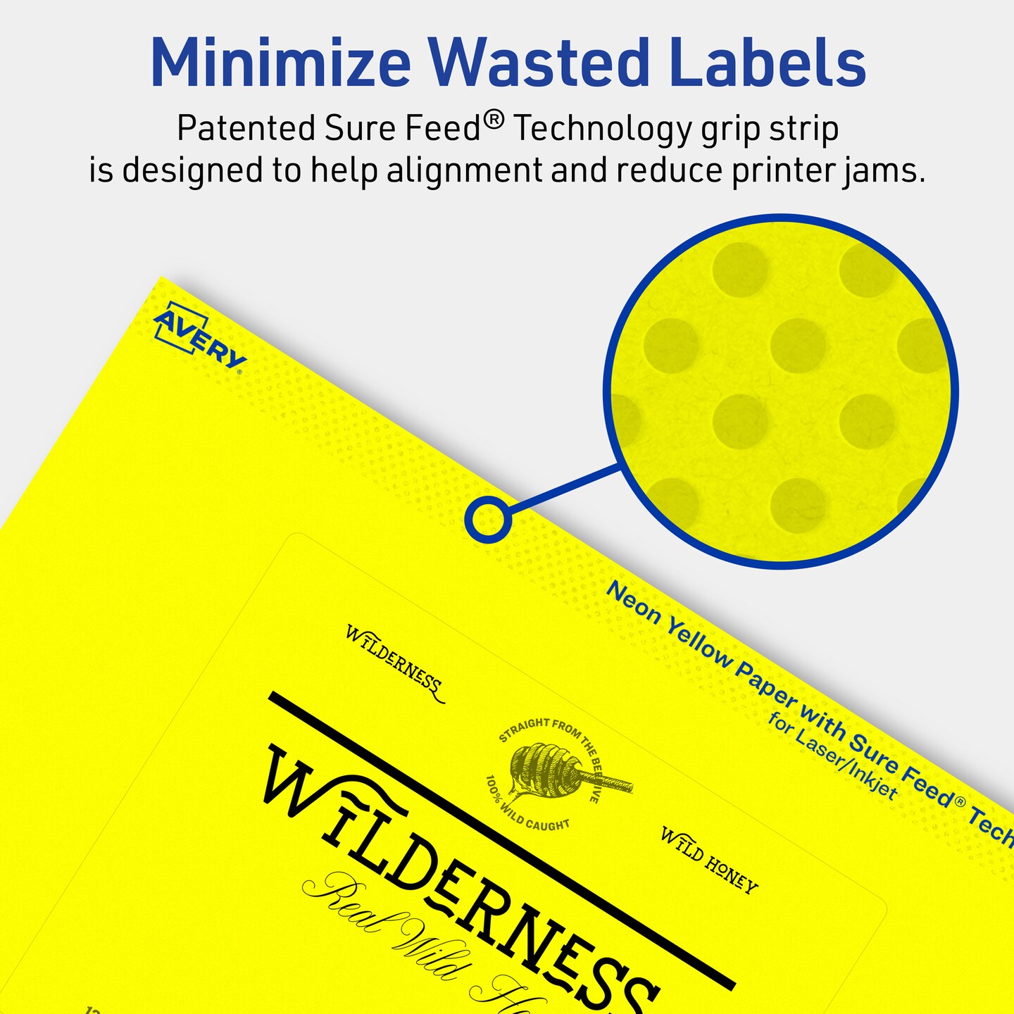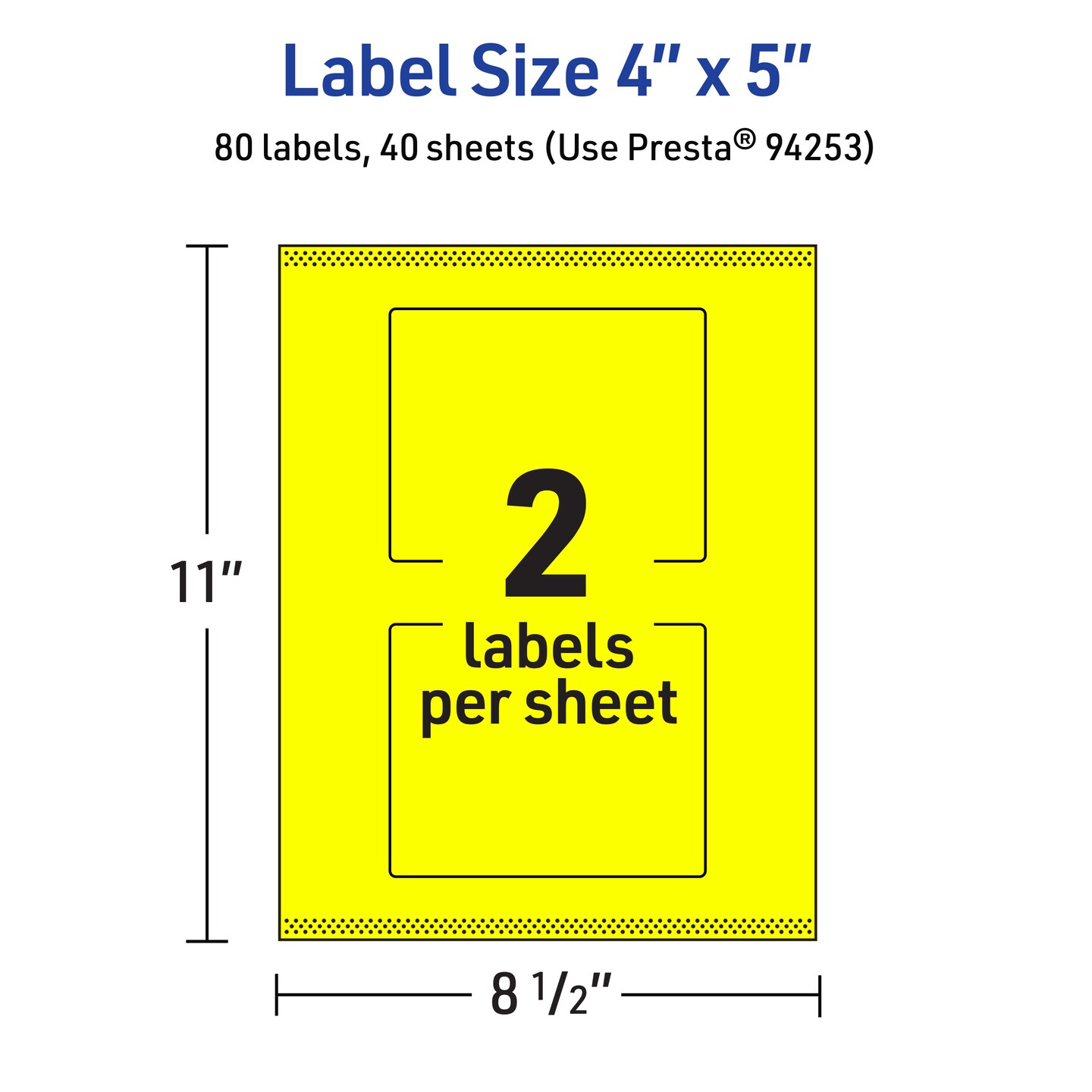 Avery Neon Yellow Paper Labels, 4" x 5" Rectangle