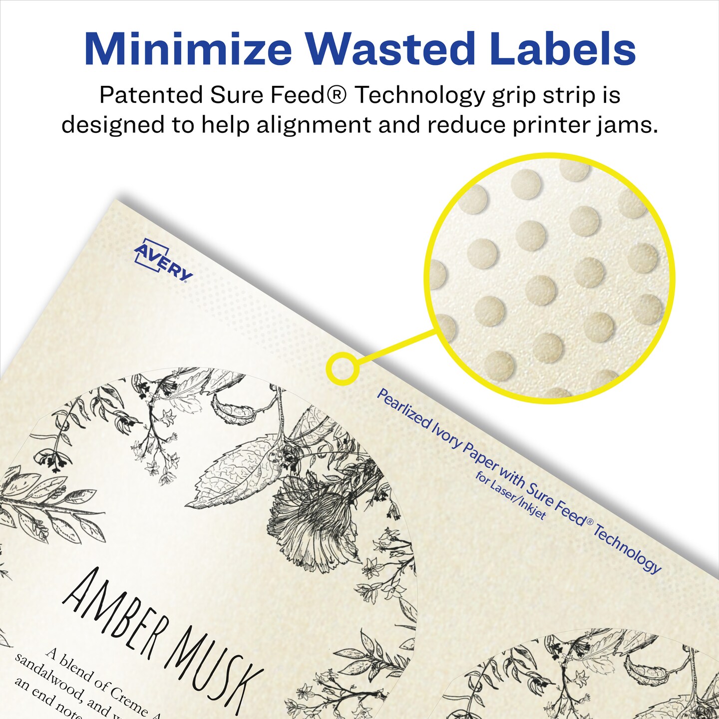 Avery Pearlized Ivory Arched Labels with Sure Feed Technology, Print-to-the-Edge, 4.75" x 3.5"