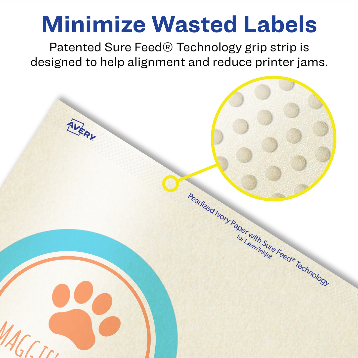 Avery Pearlized Ivory Round Labels with Sure Feed Technology, Print-to-the-Edge, 3.5" diameter