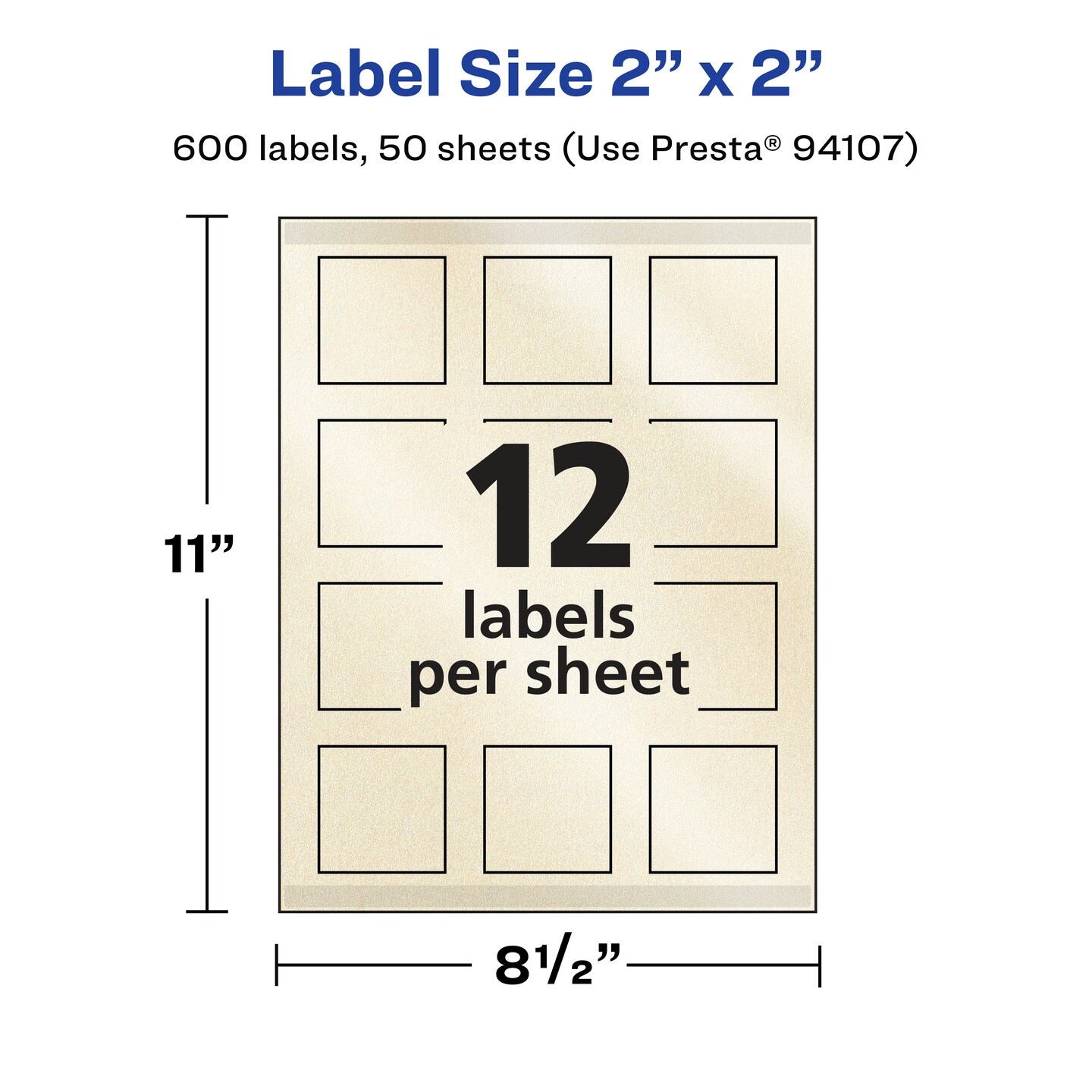 Avery Pearlized Ivory Square Labels with Sure Feed Technology, Print-to-the-Edge, 2" x 2"