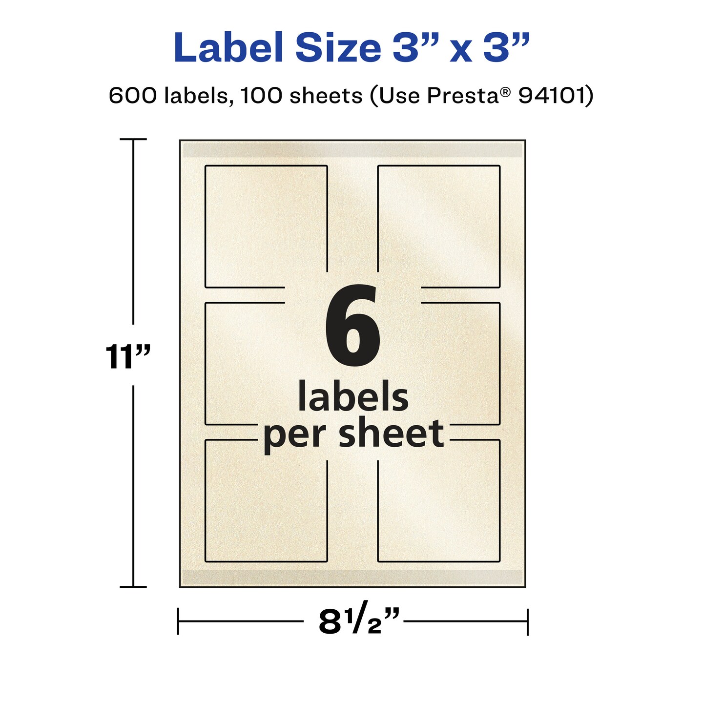 Avery Pearlized Ivory Square Labels with Sure Feed Technology, Print-to-the-Edge, 3" x 3"