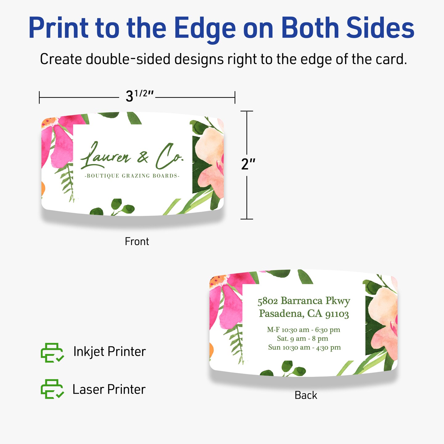 Avery Printable Arched Rectangle Business Cards, Sure Feed Technology, 2" x 3-1/2", Matte White Cardstock, Print-to-The-Edge, Laser/Inkjet Printable, 80 Total