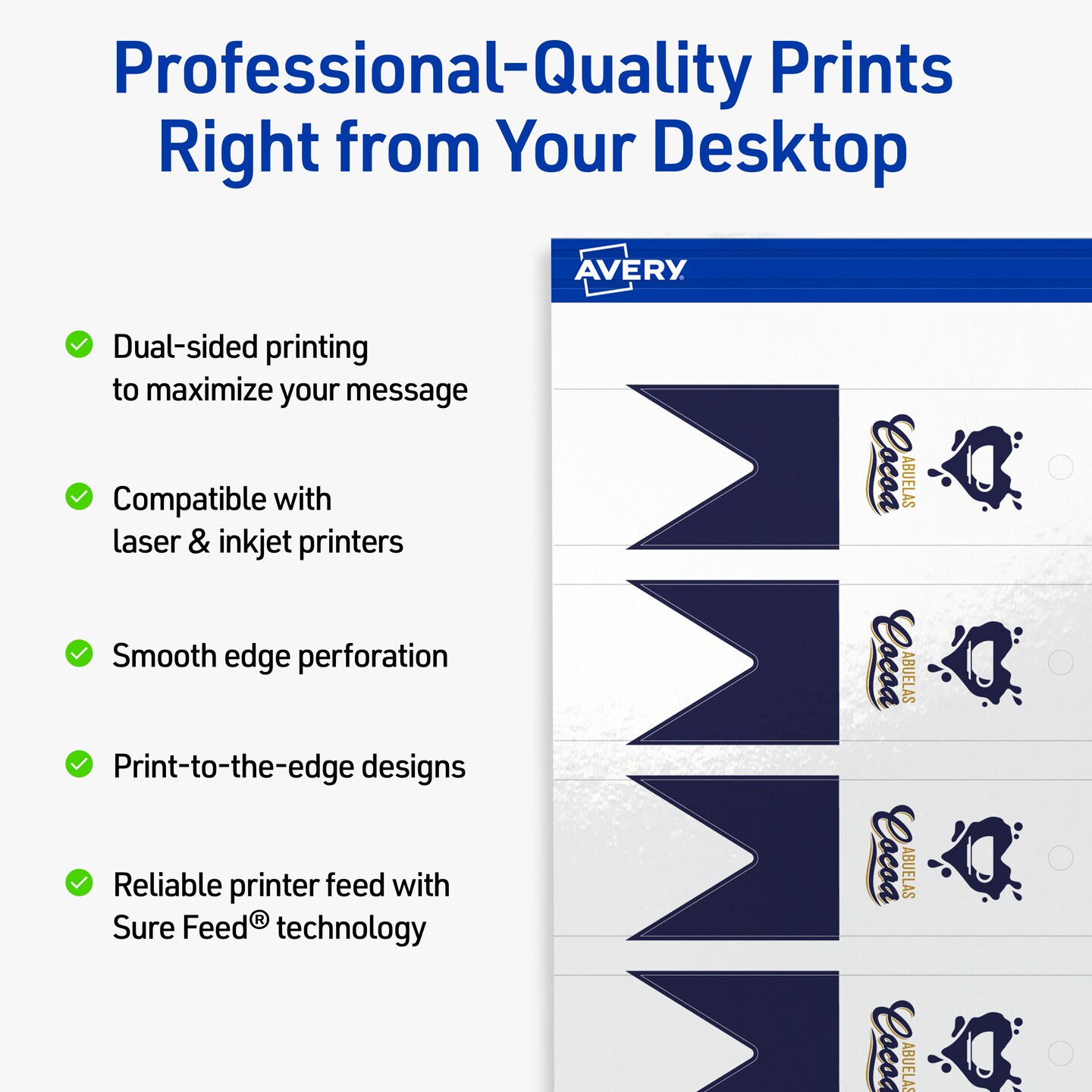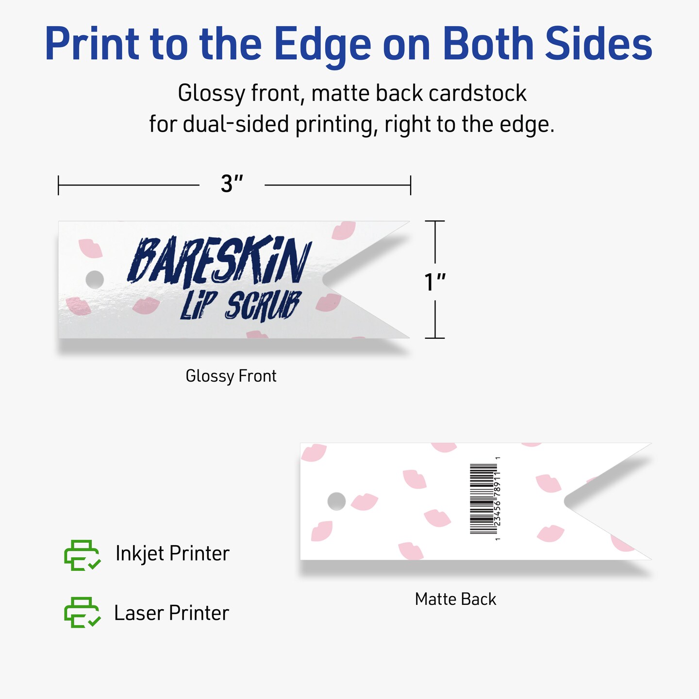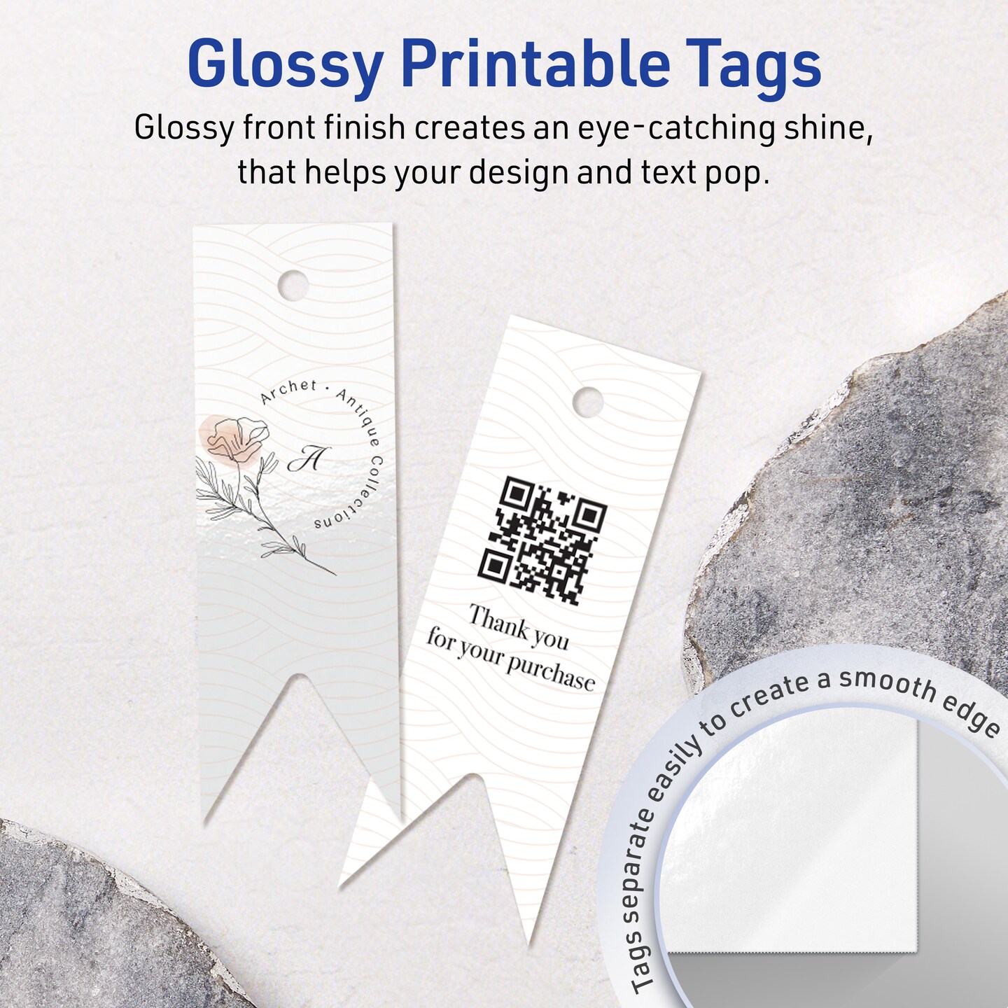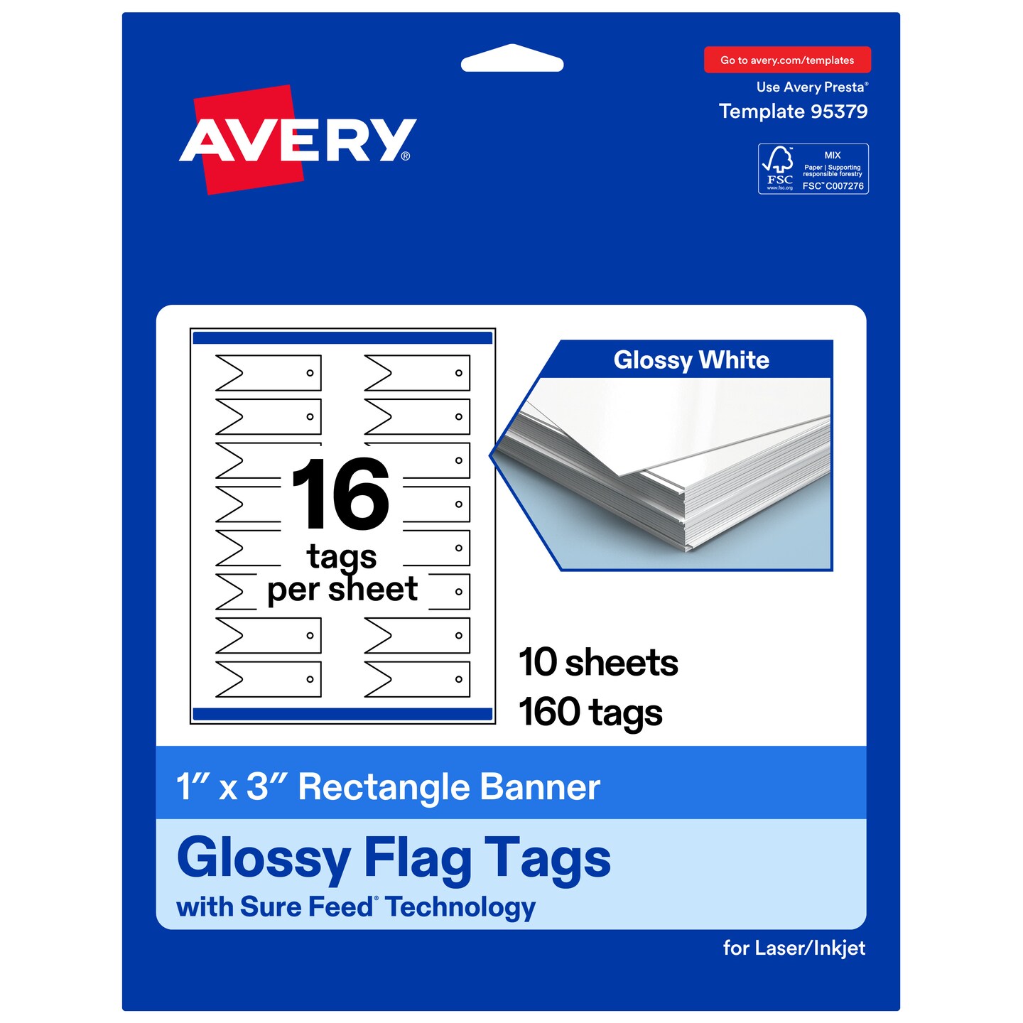Avery Printable Banner Rectangle Flag Tags, Sure Feed Technology, 1" x 3", Glossy White Cardstock, Print-to-The-Edge, Laser/Inkjet Printable, 160 Total
